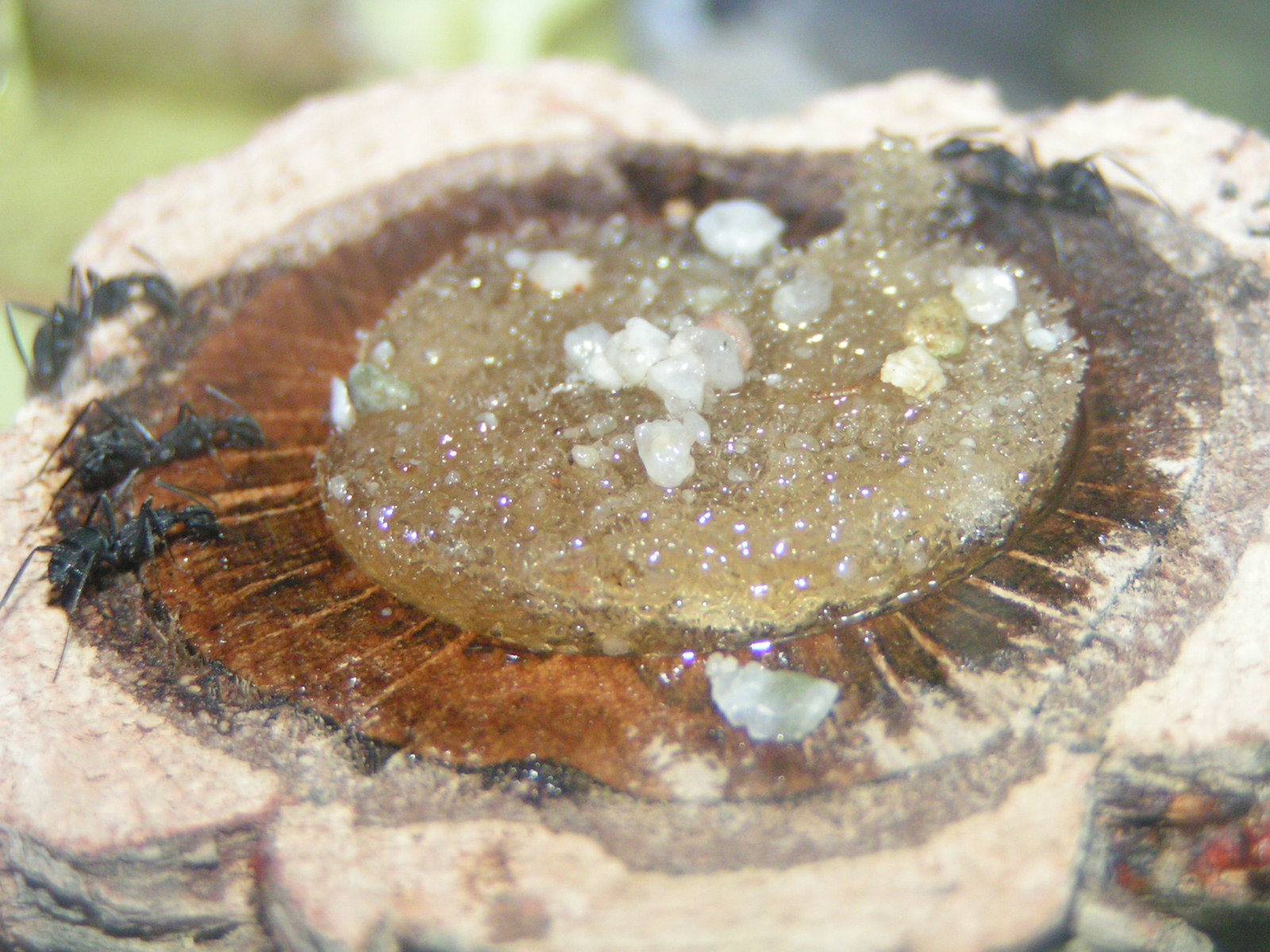Ich befeuchte das Nest nur noch von unten und zwar ganz spartanisch, wenn das Nest ein bisschen zu feucht wird sterben deutlich mehr Arbeiterinnen. Kurze feuchte Perioden OK aber dann bitte wieder trocken.
