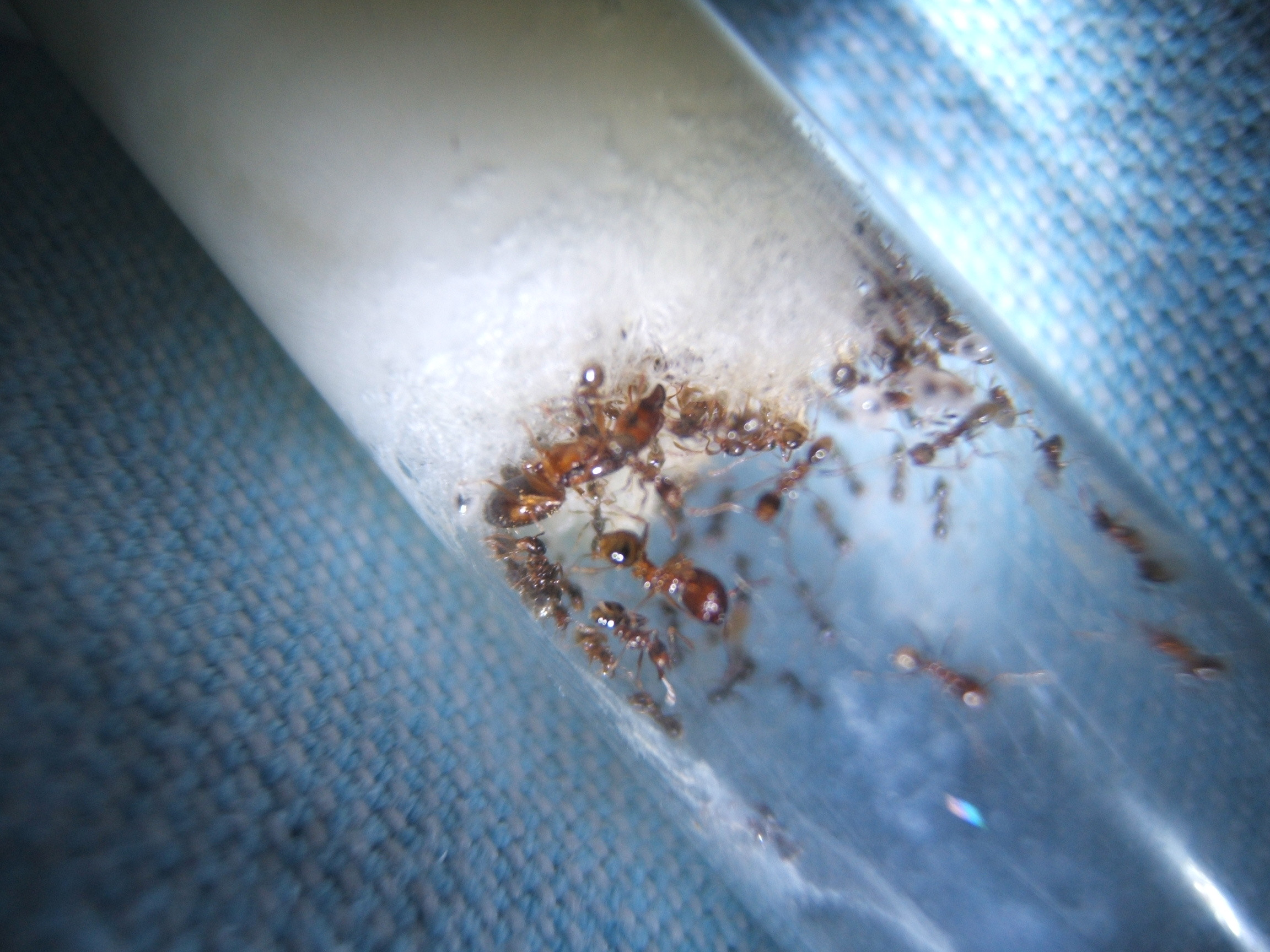Das einzige was sich änderte ist das sie etwas langsamer geworden sind und im Nest eine komische Formation vorgenommen haben.Einen Art Kreis am Reagenzglas rundherum um die Watte.Nur in der Mitte der Watte ist überhaupt gar keine!Sieht echt komisch aus.Und die
