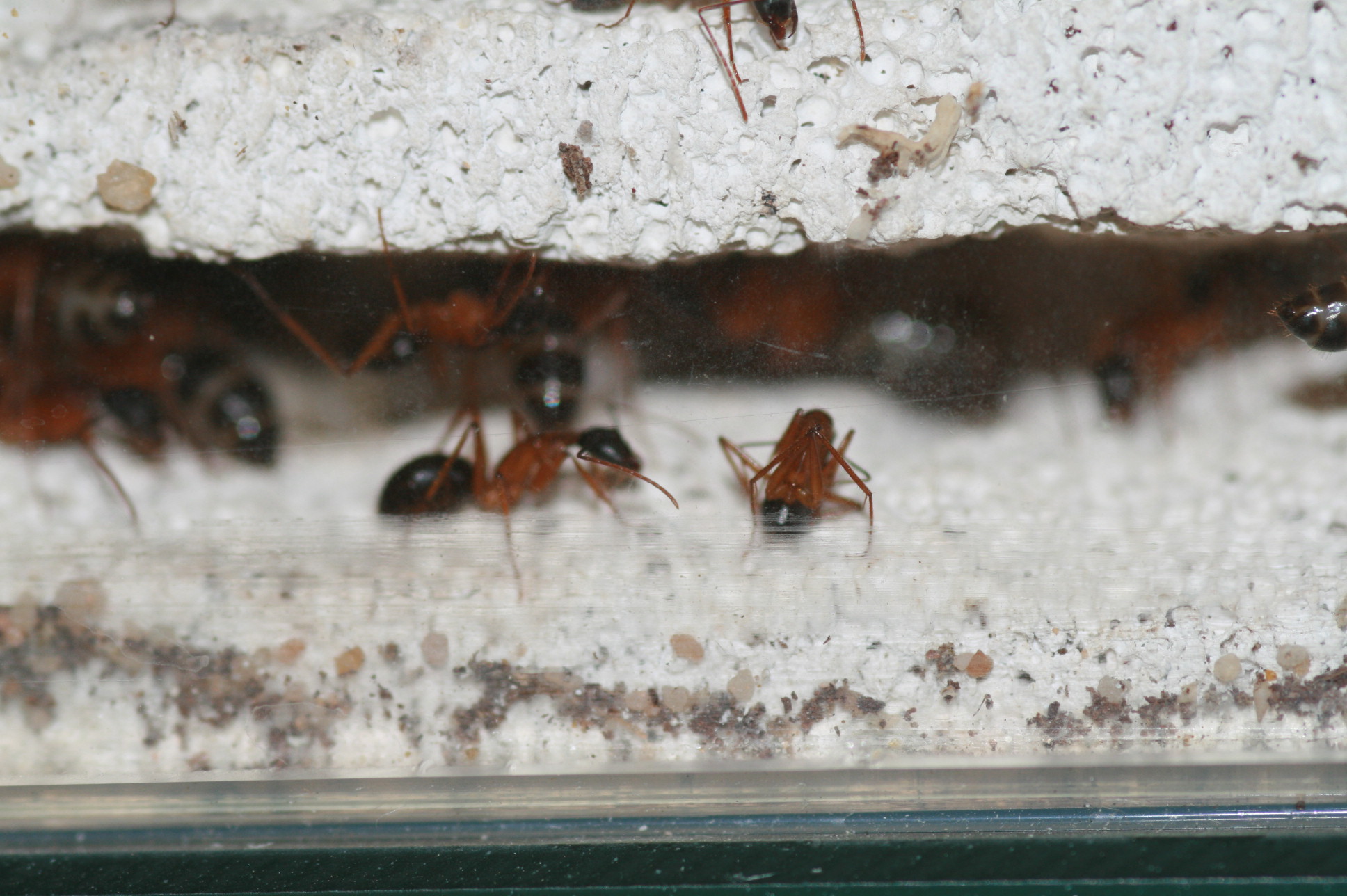 Die Camponotus nigriceps haben jetzt eine neue Unterkunft. Sie leben in einem 50x20x30cm Becken.