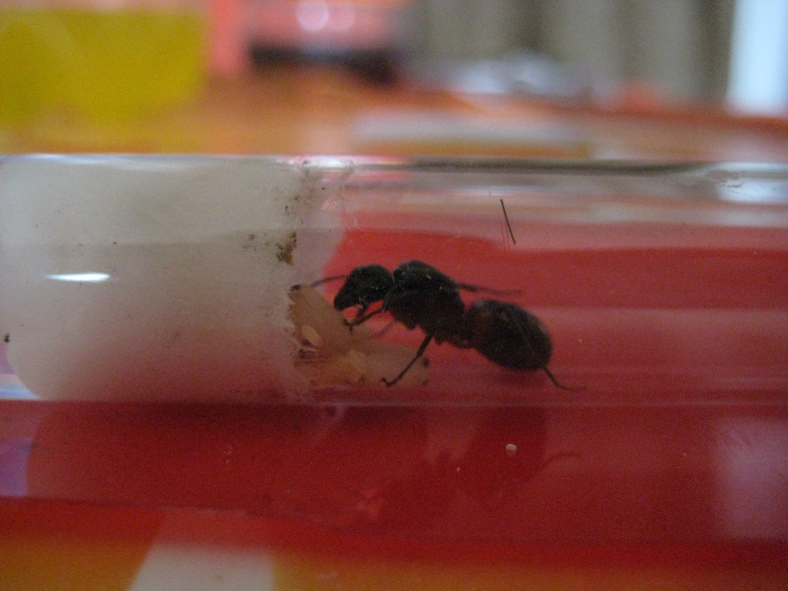 Königin alle mal entstanden. Und die gleiche Prozedur werde ich jetzt noch einmal durchziehen müssen. Ich kann jedoch in diesem Fall nicht wirklich von einem Anfängerfehler sprechen. Hätte ich für mein Formicarium einen helleren Stellplatz, wäre die neue Folie die richtige Entscheidung gewesen. In das Y-Tong-Nest habe ich eine echt gute Einsicht, dass gleiche Resultat hatte ich natürlich auch bei dem Reagenzglas erwartet, leider habe ich mich zu früh gefreut! Es ärgert mich einfach die