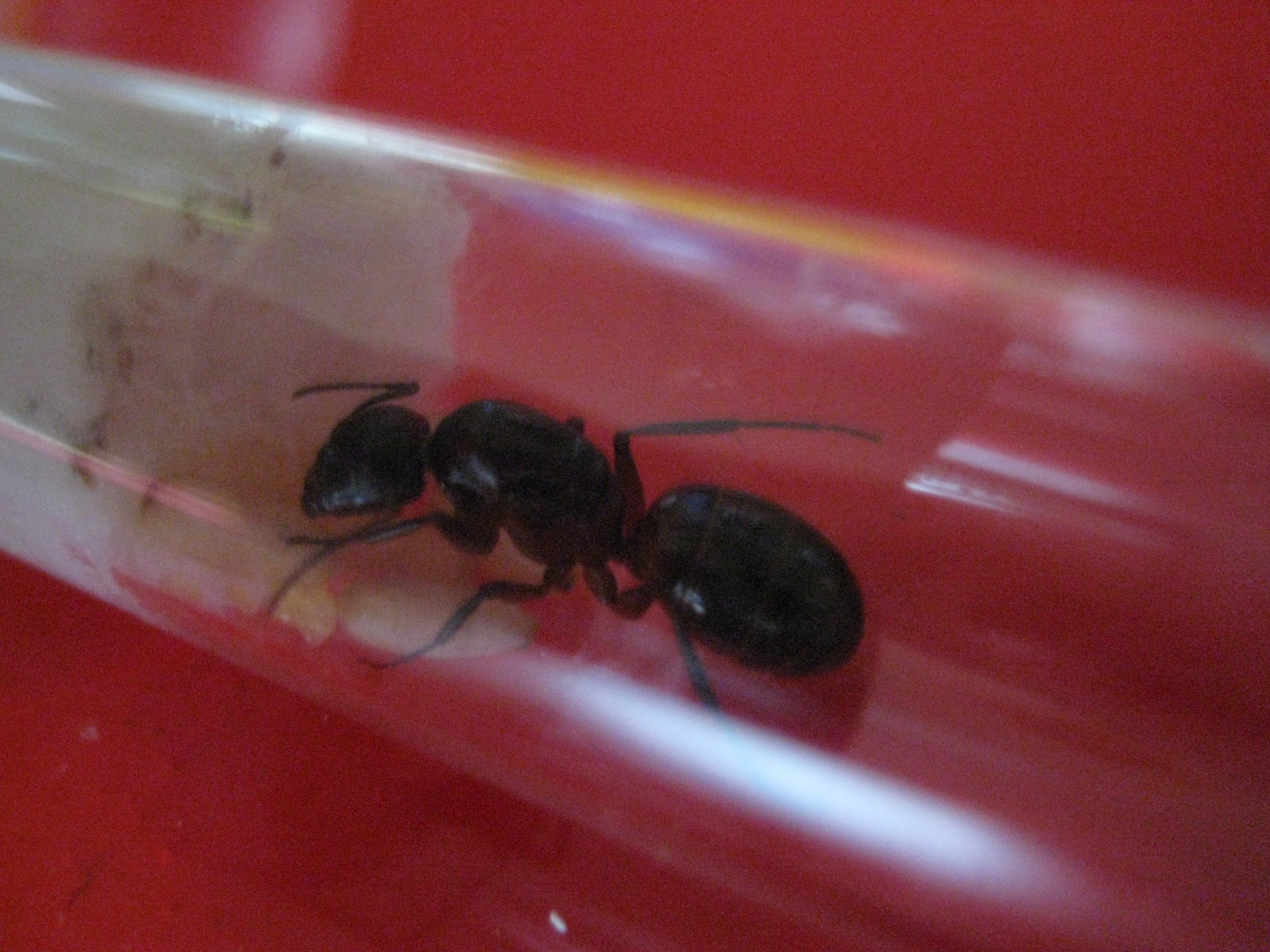 29.07.2008 Achtundzwanzigster Tag Ich habe es gewagt! Heute habe ich die rote Folie vom Reagenzglas entfernt und sie durch eine andere ersetzt! Enttäuschendes Ergebnis, denn die neue Folie lässt mir noch weniger Einsicht in das Reagenzglas. Die Vorherige Folie war eine Schutzfolie für z.B. Schulbücher und war leicht milchig. Jetzt habe ich die Folie benutzt, die ich auch für den Bau des Y-Tong Nestes verwendet habe. Im Nachhinein musste ich jetzt leider feststellen, dass man durch die andere Folie zwar alles nur sehr verschwommen gesehen hat, jedoch ließ sie mehr licht einfallen! Leider sehe ich jetzt noch wesentlich weniger. Ich werde mir jetzt schnell noch einmal die andere Folie besorgen und diese wieder verwenden müssen. Leider ist dies zwingend notwendig, da ich die Ameisen ja nun im Reagenzglas überwintern lassen will, ohne Einsicht in das Reagenzglas wäre das ein Himmelfahrtskommando! Dieses Risiko möchte ich bei weitem nicht eingehen. Schließlich habe ich der
