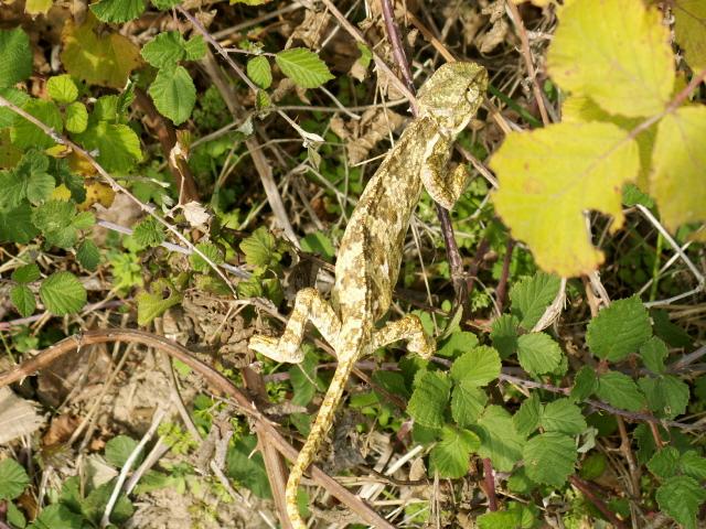 Wirbeltiere gab es ebenfalls in Mengen. Landschildkröten, Eidechsen, Geckos, Skinke, Schlangen, Frösche und Kröten waren allerorten an geeigneten Stellen anzutreffen. Eine Überraschung war ein Chamäleon für uns, wir haben es fotografiert.