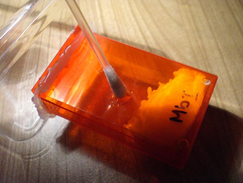 Hier mit WattestÀbchen als Beweis dass in der OberflÀche kein Wasser mehr ist, sonst wÀhre alles weggesaugt.