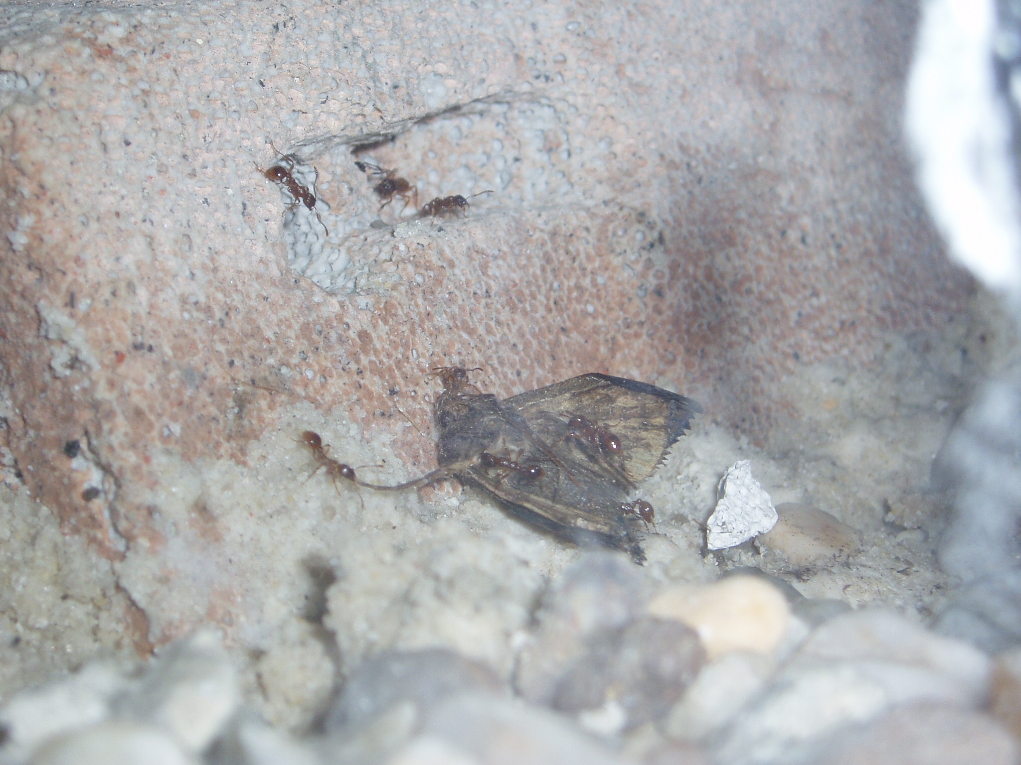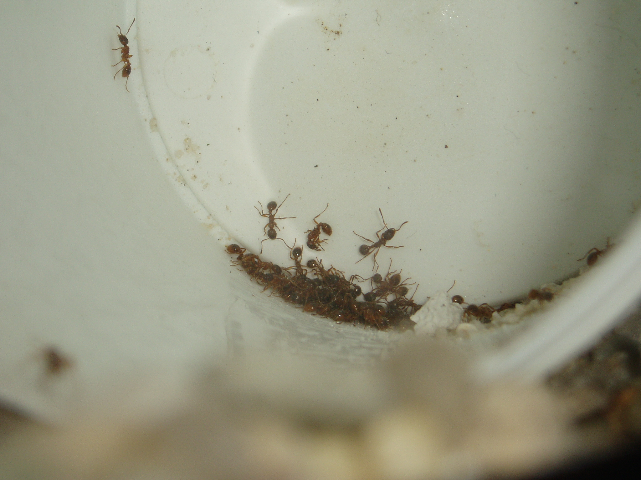 Ich hab nach einigen Tagen Waldwanderung doch Erfolg gehabt... von einer riesigen Myrmica rubra Kolonie hab ich eine Königin und etliche Arbeiterinnen mitgenommen. Das Formi (Bild 1) war schon fertig, die Meisen haben sich im ersten Moment noch im FanggefÀà um die Königin gedrĂ€ngt (Bild 2), sind dann aber ziemlich schnell doch umgezogen (Und drĂ€ngen sich jetzt auf dem einzigen cmÂČ Nest, der nicht einsehbar ist -.-). Da ich leider keine Brut erwischt hab, gabs gleich ein paar Proteine (Bild 3), die auch sofort gierig ins Nest gezerrt wurden (Bild 4). Dann fiel mir mit der Zeit auf, dass die Meisen im Vergleich zu meinen Serviformica sp., die ich vorher hatte ziemlich aktiv sind. Allerdings: wenn ich so die Hand ins Formi halt kommt mir das ziemlich warm vor dadrinnen, obwohl der Deckel eigentlich den ganzen Tag offen steht. Wenn ich Luft reinwedel, kommen ein paar Sekunden spĂ€ter viele Ameisen aus dem Bau rausgewuselt, rennen hektisch umher und wieder ein paar Sekunden spĂ€ter haben sich die meisten wieder im Bau gesammelt, aber einige gehen dann plötzlich auf Nahrungssuche und sind insgesamt aktiver und schneller unterwegs. Nach ewigem Text nun meine Frage^^: Sind die Meisen in dem Moment einfach aufgeregt durch den Luftzug (obwohl sie den ja im Bau nicht wirklich mitkriegen dĂŒrften) oder ist es den Meisen zu warm? Ist das so, dass Ameisen (speziell Myrmica rubra) in so eine Art Energiesparmodus gehn wenn es zu warm wird?
