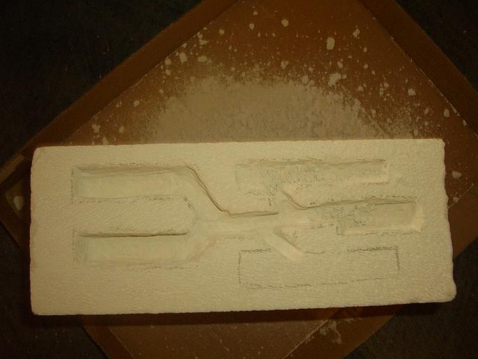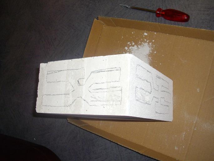 Danach die Kammer auf einem StĂŒck Y tong aufgezeichnet und ausgemeiselt.