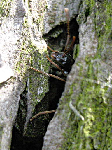 Ich hab die Ameise gerade in 1,80m Höhe an einem etwa 150 Jahre alten Birnenbaum mit Totholzanteilen in der NĂ€he freigelassen. Sie hat kurz an der Rinde geknuspert und ist dann Richtung Boden gelaufen. Das war die erste Ameisenkönigin, die ich bewuĂt selbst gefunden hab (*trĂ€um*).