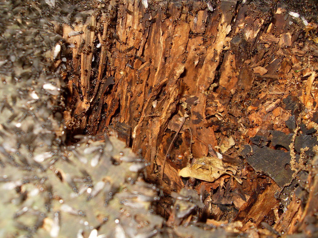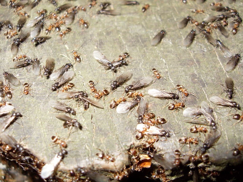 Bein ausĂĽben einer meinen Hobbys neben der Ameisenhaltung ist mir in der ferne ein Schillern auf einem Baumstumpf aufgefallen. Es stellte sich herraus das es die FlĂĽgel, von sehr vielen Geschlechtstieren war.
