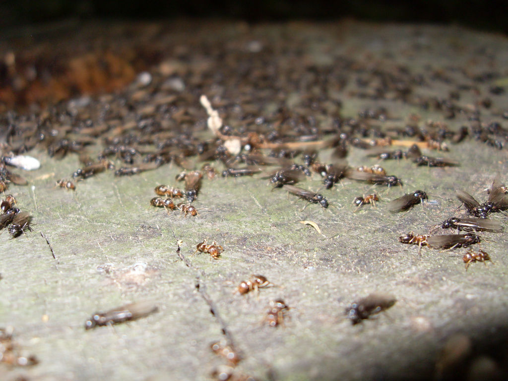 Bein ausĂĽben einer meinen Hobbys neben der Ameisenhaltung ist mir in der ferne ein Schillern auf einem Baumstumpf aufgefallen. Es stellte sich herraus das es die FlĂĽgel, von sehr vielen Geschlechtstieren war.