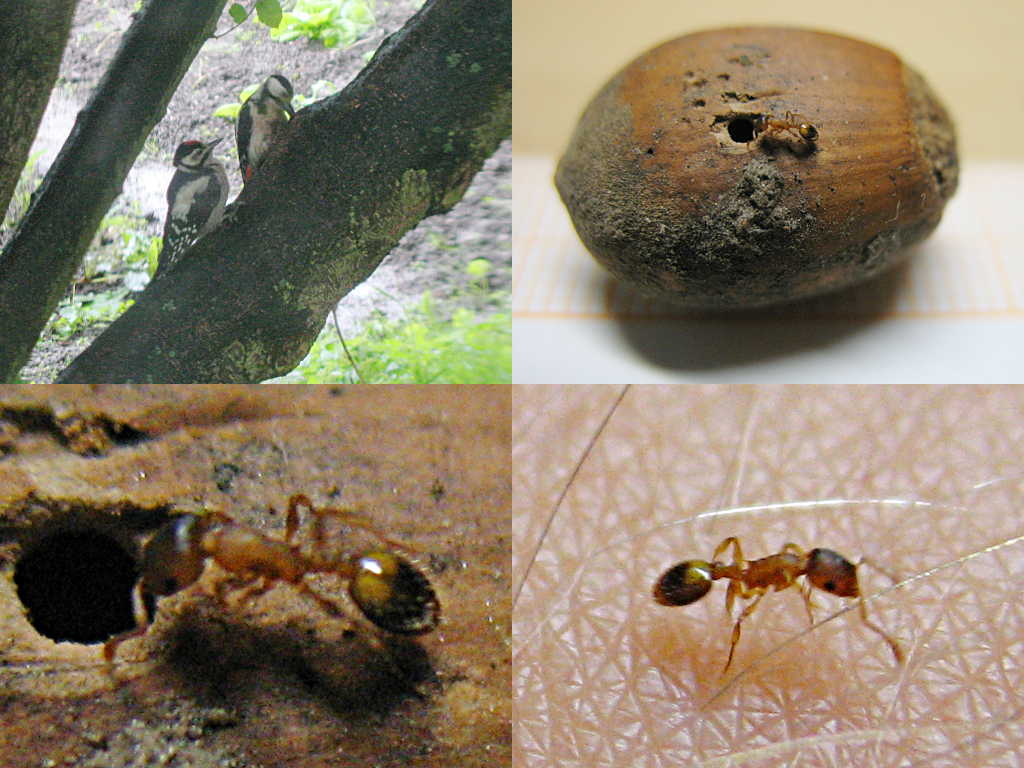 Nest: Die Ameisen leben in einer etwa 2cm groĂen HaselnuĂ, die ich in den AbfĂ€llen einer Spechtschmiede gefunden hab. Vielleicht hat sie ein Specht versehentlich fallen lassen und nicht wiedergefunden. Der Eingang ist etwa 1,1 bis 1,2 mm groĂ. Bisher haben sich knapp zehn Ameisen aus der NuĂ herausgetraut.