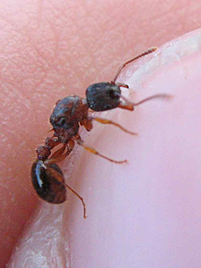 Bilder 3 und 4: Ist das endlich die gesuchte Tetramorium sp.? Etwa 7mm lang, Kopf und Gaster dunkel, der Mittelteil allerdings rötlich.