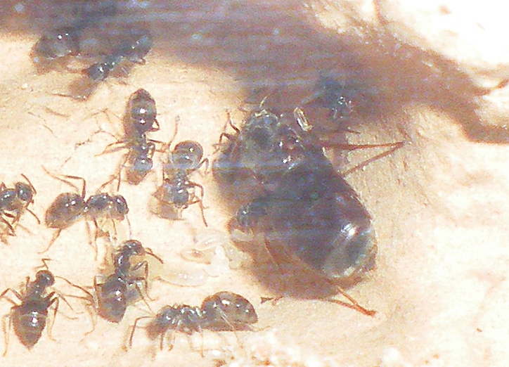 ca 1cm bis 1,2 cm Groß, dunkelbrauner Körper mit "Silberstreifen" am