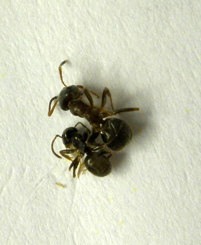 Frage:ist das beides die gleiche Art oder ist die gröĂere etwas im Berreich Formica fusca? Habe beide schon unter VergröĂerung angeschaut aber die grössere hat etwas andere Bauart-zwischen