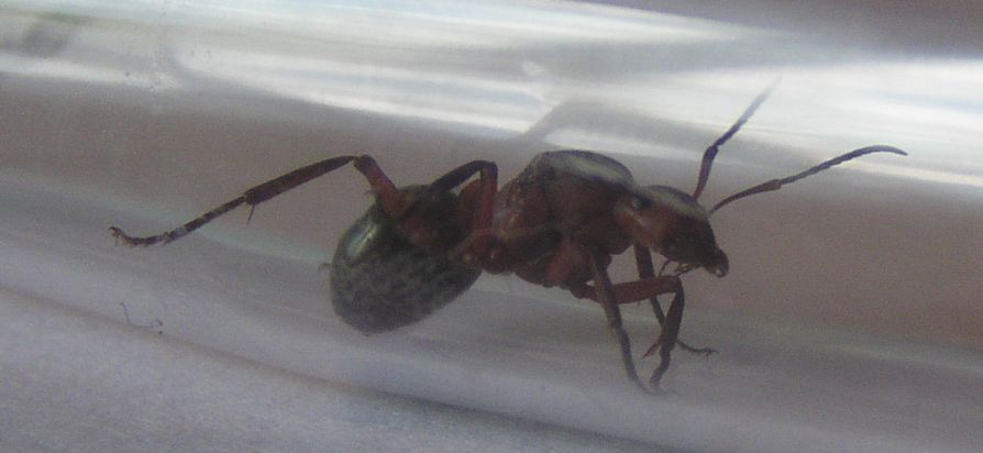 Von unten war die Ameise fast komplett Hellrot, ist auf dem Foto leider etwas unscharf geworden.