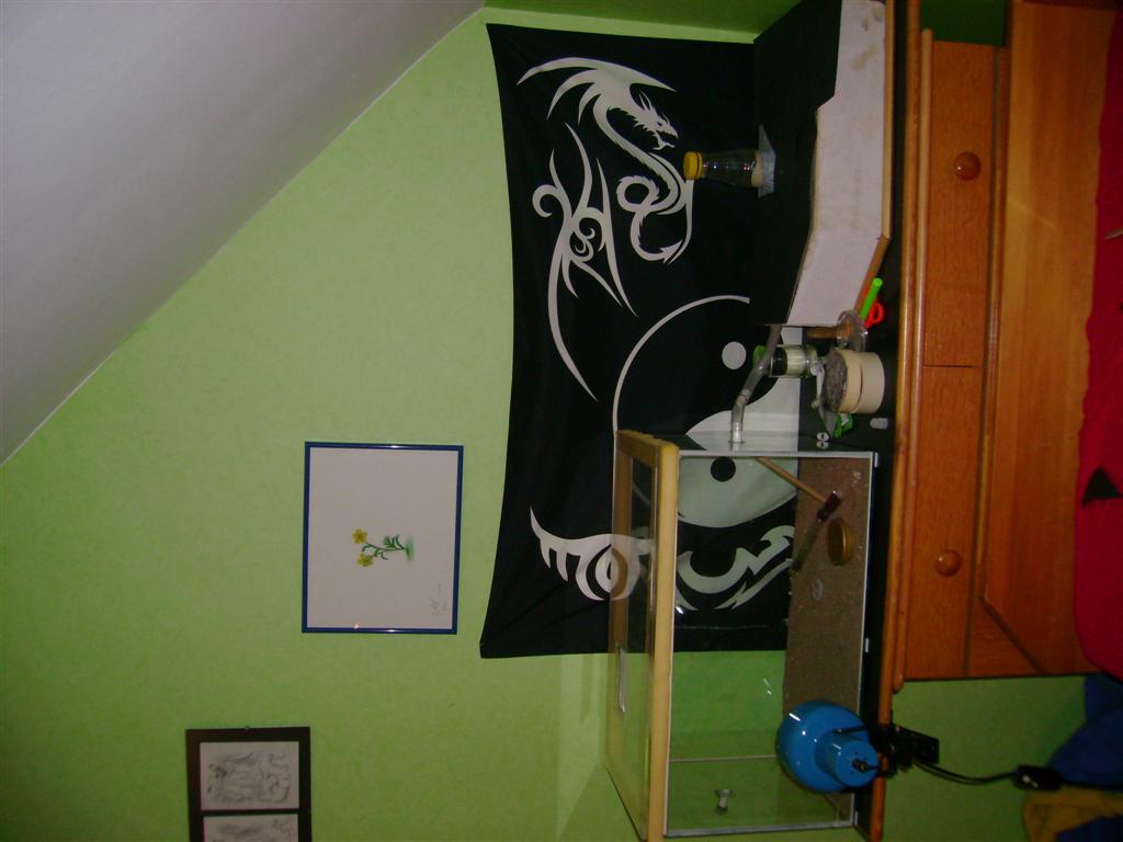 Ich hatte vor sie auf der Höhe der Flagge und des Bildes zu hängen, etwas weiter links ist eine Bohrung, die dafür eigentlich gut sein sollte.