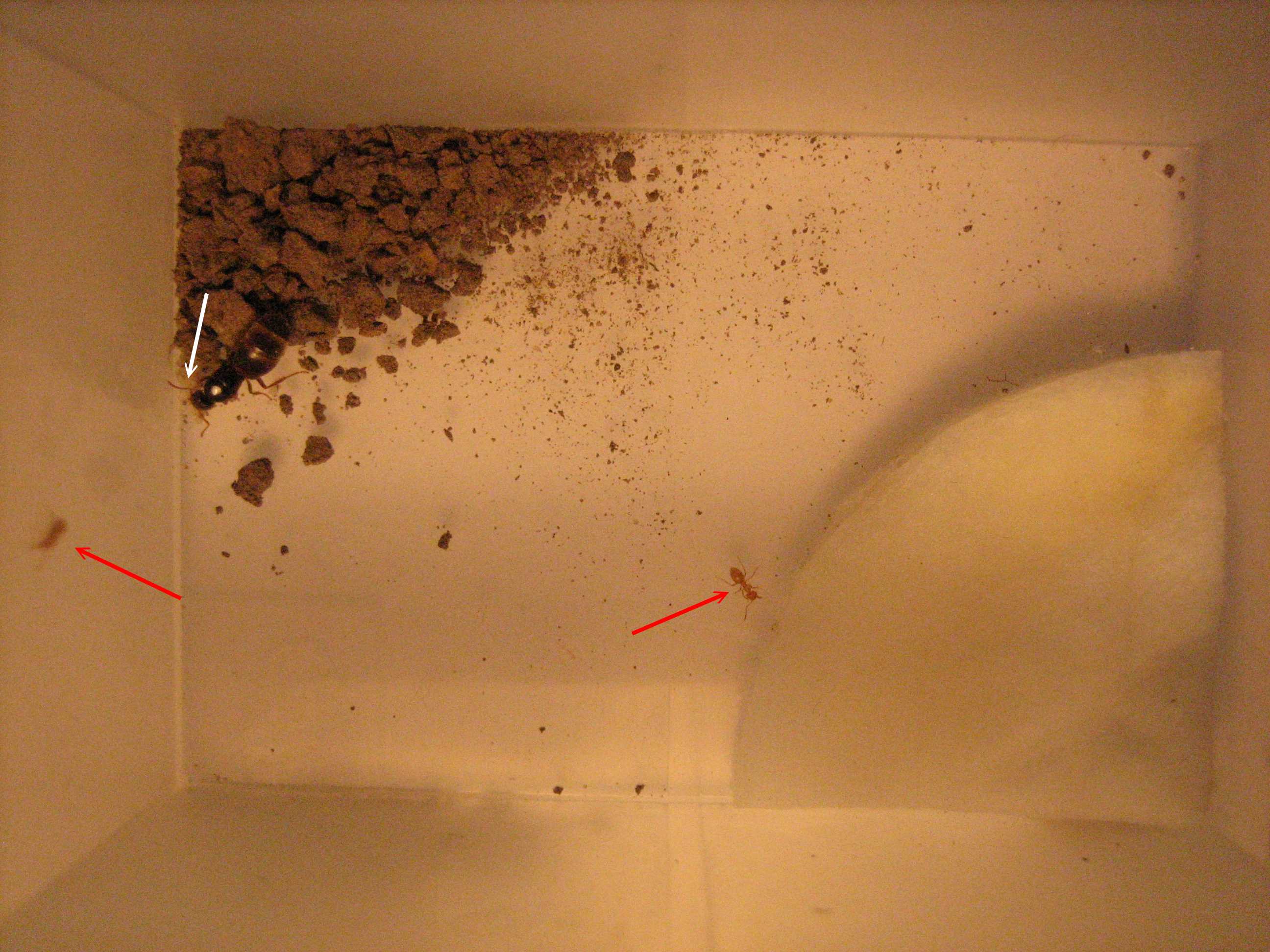 Weißer Pfeil: Larven von Lasius Flavus (?)
