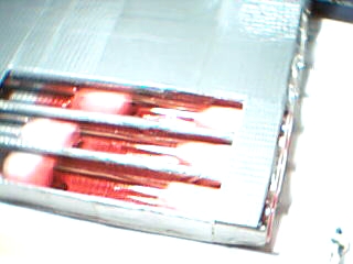 Gießform knapp halb mit Gips füllen, RG etwa halb reindrücken (Ich hab mir dafür eine Lehre gebastelt, siehe Zeichnung). Nach dem Erhärten, aus der Gießform nehmen und noch ein bisschen "zurechtkratzen" (bei Modellgips schon nach 20min möglich). Ich habe dafür einen Schraubendreher verwendet; die Spuren sieht man ganz gut. Je ungleichmäßiger, desto lichtdichter. (Beim nächsten Mal werde ich da mal eine deutliche Längsnut reinkratzen.)