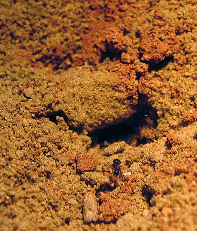 Die Meranoplus bicolor haben sich ĂĽbrigens schon eine Stelle ausgesucht und fleissig mit ihrem Nestbau begonnen.