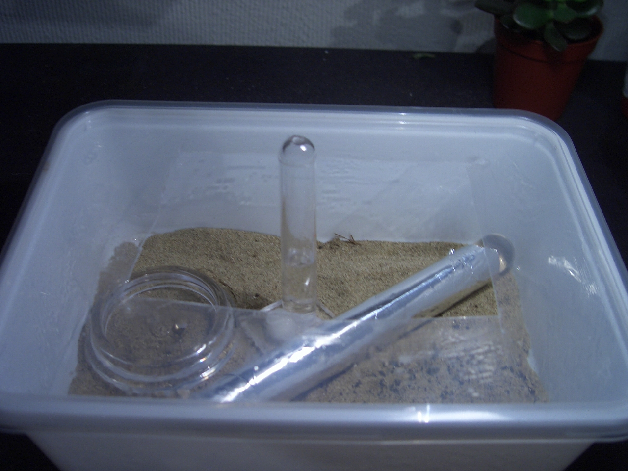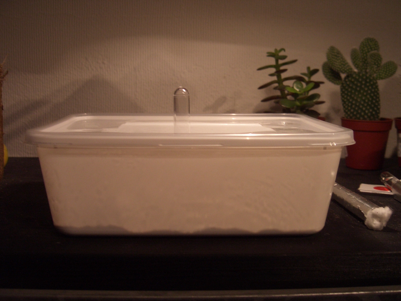 Und jetzt nochmal mit Deckel, den ich benutze um die Wärme ein bisschen zu speichern.(Ist zu kalt, bestelle aber am Samstag eine Heizmatte):