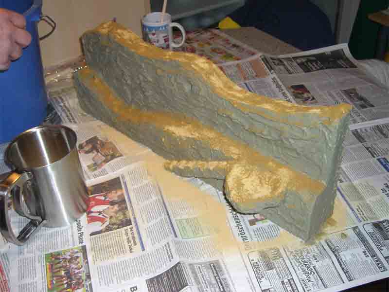 Dann noch eben mit nem Stabfeuerzeug das Styropor etwas angekokelt, um dem Ganzen ein paar Konturen zu verpassen.
