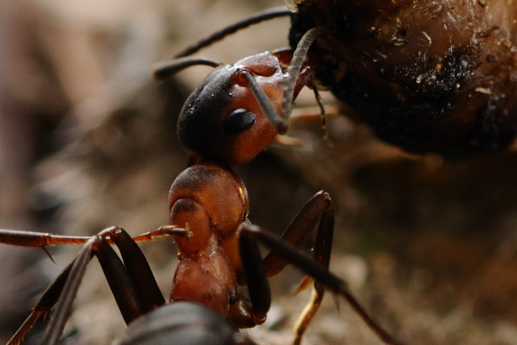 Ja und jetzt sieht man sehr gut, dass am Thorax so gut wie keine Behaarung vorhanden ist. Auch die dunklen Flecken auf Pronotum u. Mesonotum zeigen (bis auf vielleicht ein Bild) keine deutliche Abgrenzung zur roten FĂ€rbung der ĂŒbrigen Thoraxbereiche. Damit kommen wir zu JanÂŽs Meinung: Sehr wahrscheinlich Formica polyctena. Man könnte die Seite jetzt ohne weiteres auch mit Formica cf. polyctena betiteln. Der jetzige Titel ist aber auch in Ordnung!