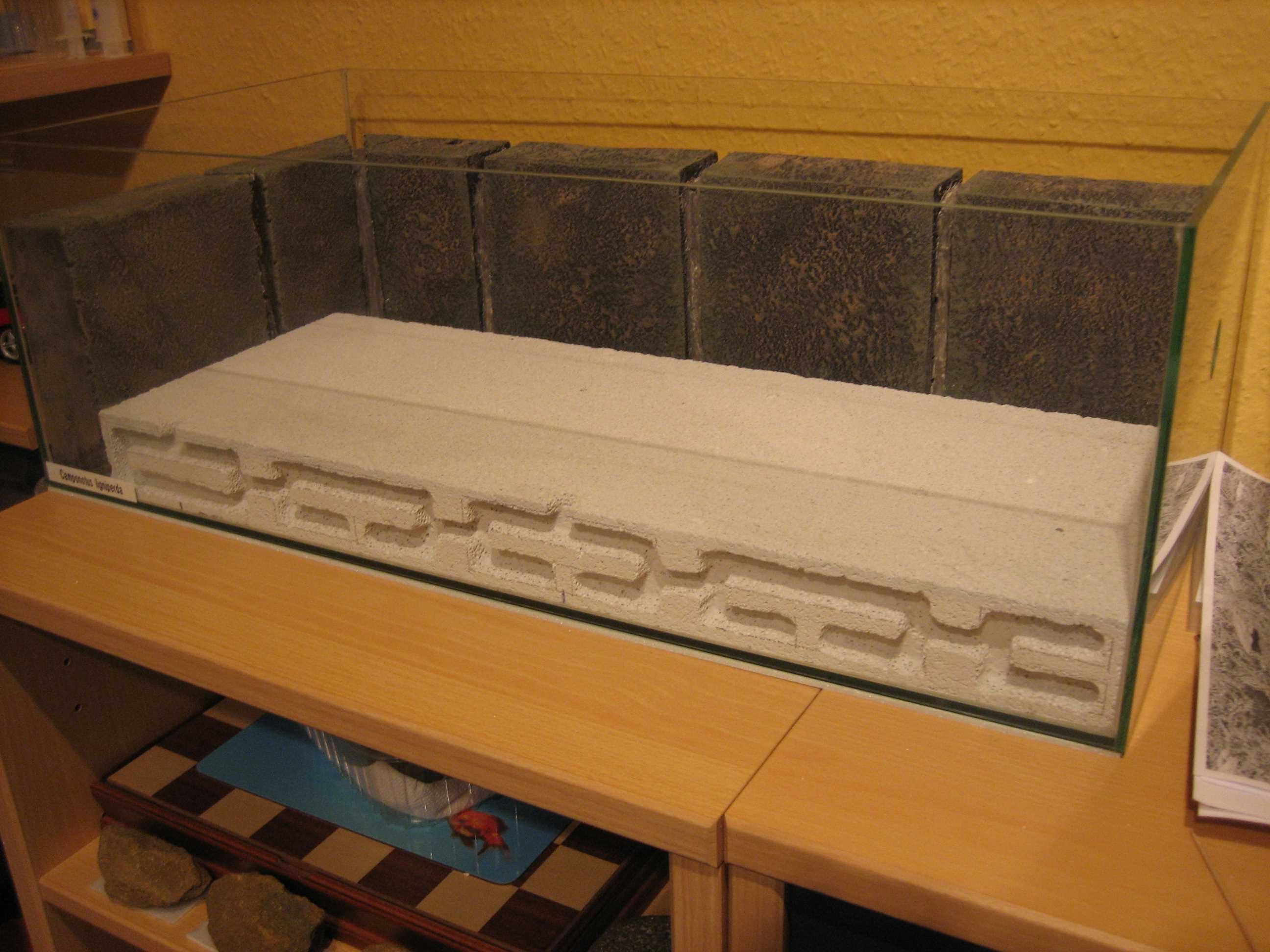 Da ist mir das Becken auch zu schade fĂŒr.Hatte schon ĂŒberlegt, ob man das Becken auf die Seite stellt und aus Plexiglas noch einen Teil ranbaut... Aber der Ausbruchsschutz und die FĂŒtterung sind dann nicht mehr so leicht zu realisieren.