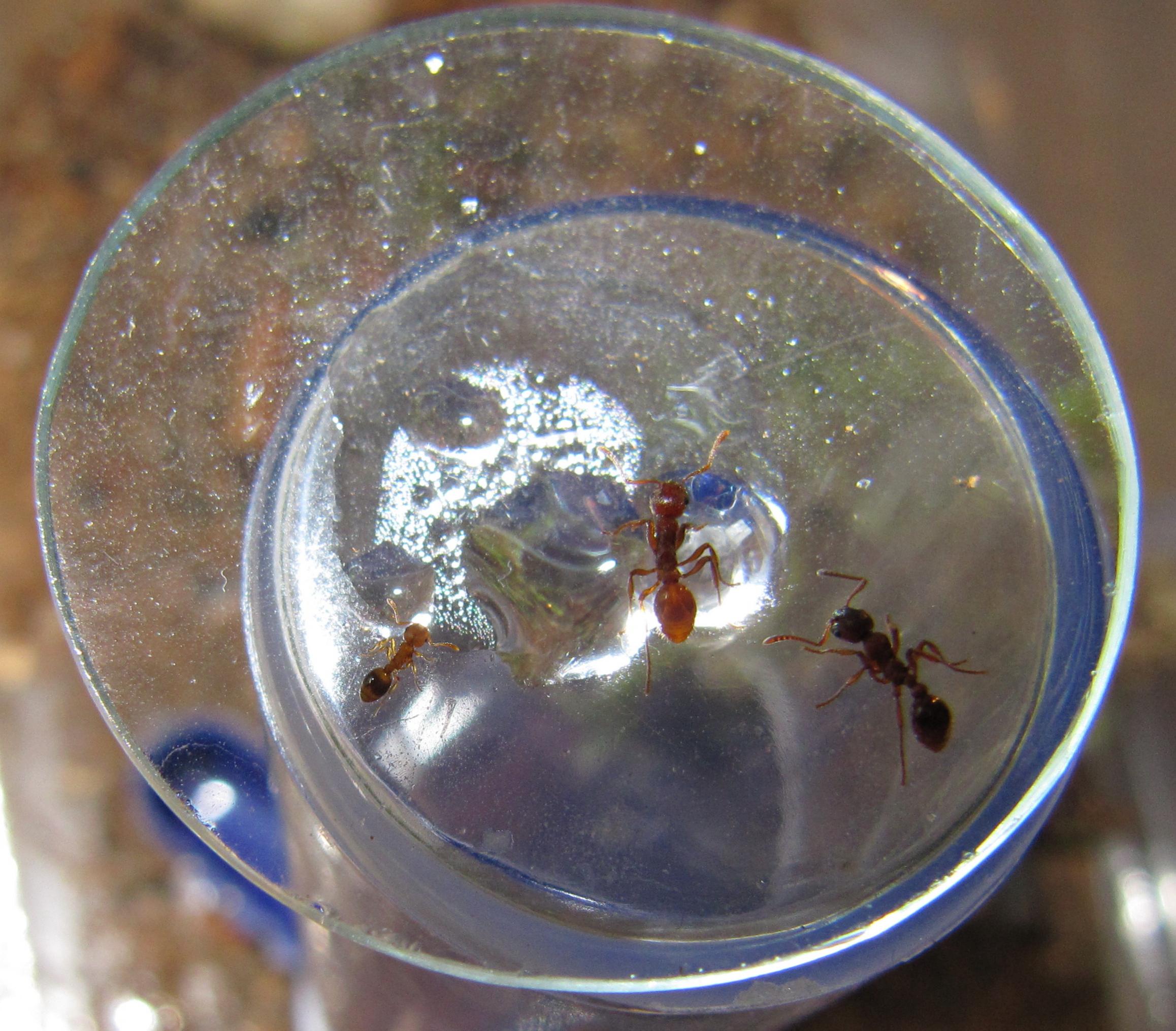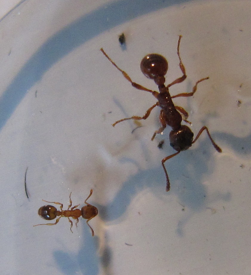 a. Die Kleinen (Temnothorax cf. nylanderi) treffen auf die Großen (Myrmica cf. rubra):