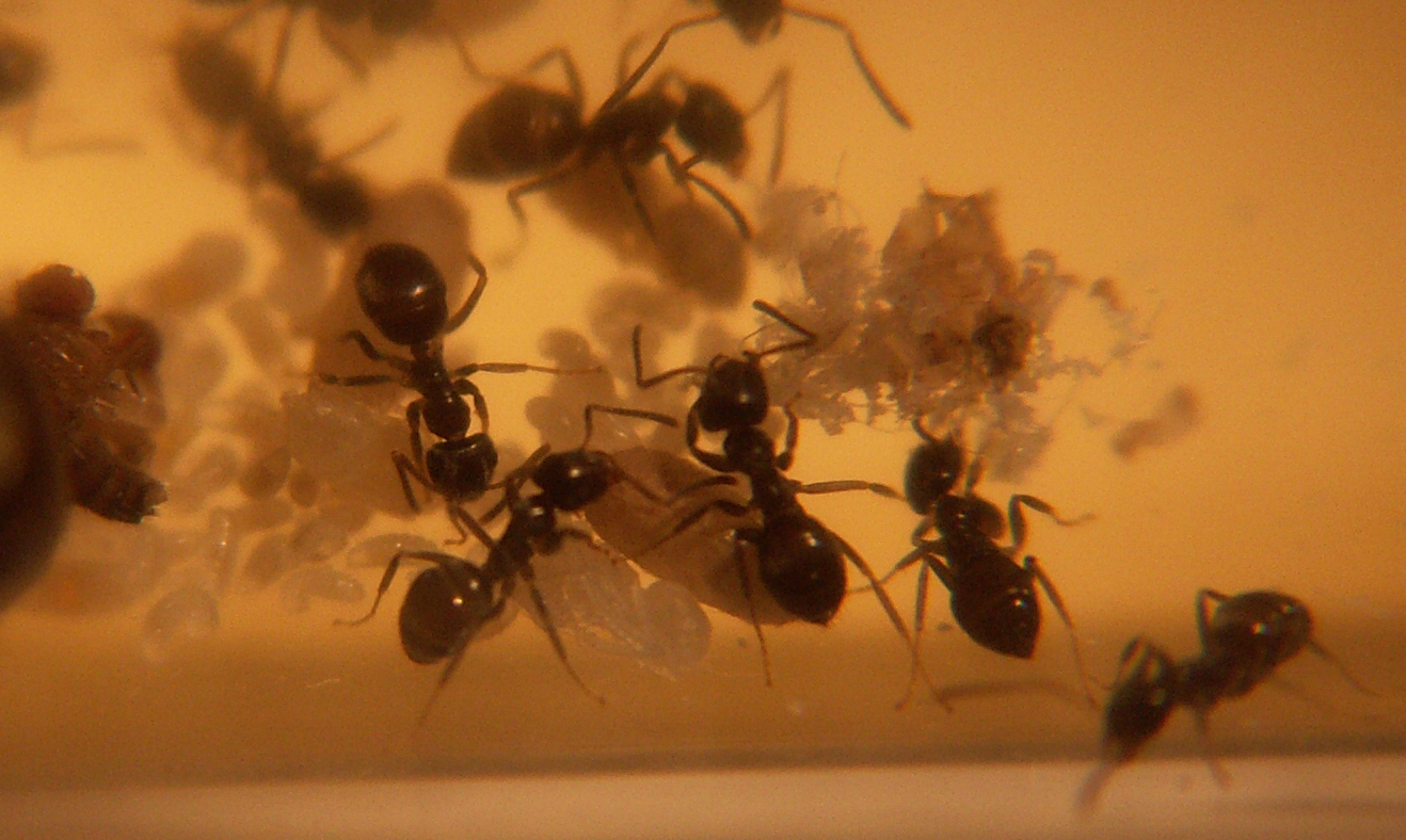 Bei mir in Haltung: Lasius niger(> 1000 A.), Formica fusca (400-500 A.), Formica sanguinea (300-350 A.) Camponotus ligniperdus(35 A.), Temnothorax unifasciatus (1 A)