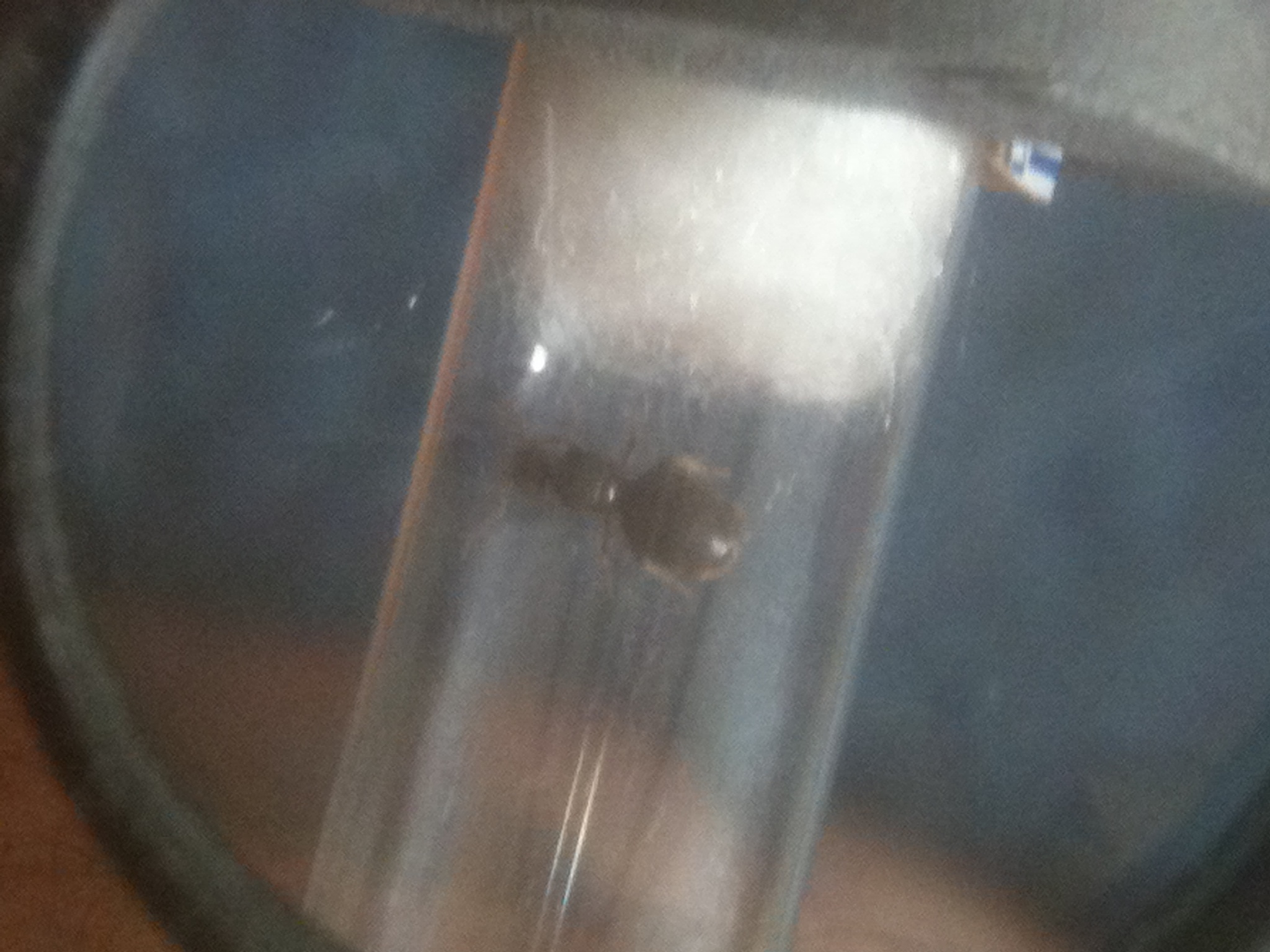 Vll probier ichs mal nĂ€chste Woche ohne Reagenzglas aber fĂŒrs Erste hatte sie genug Stress. Da an der Stelle einige Königinnen waren habe ich einem Kumpel noch eine mitgebracht vll kann der ja bessere Bilder machen ich stell sie dann hier ein.