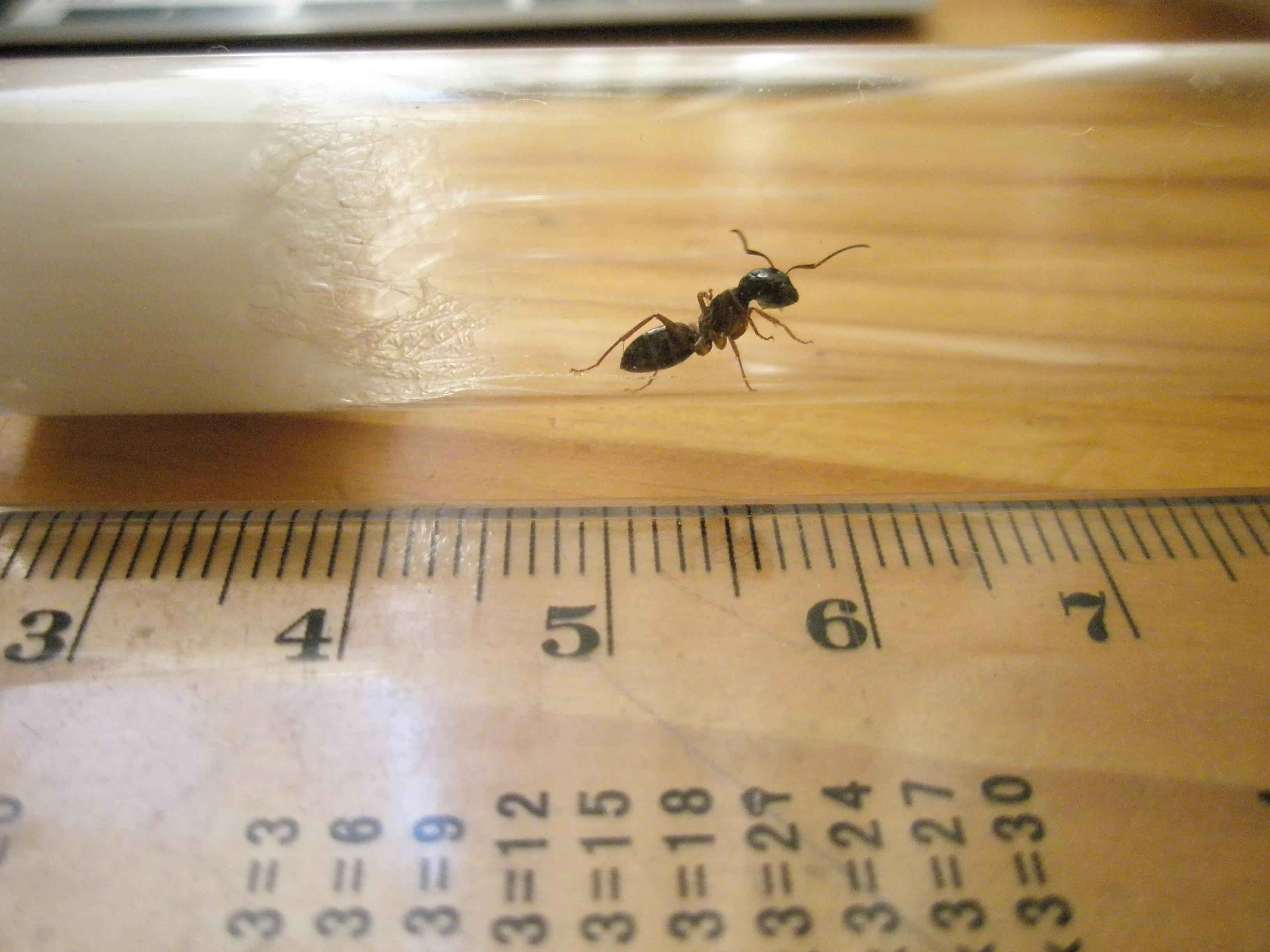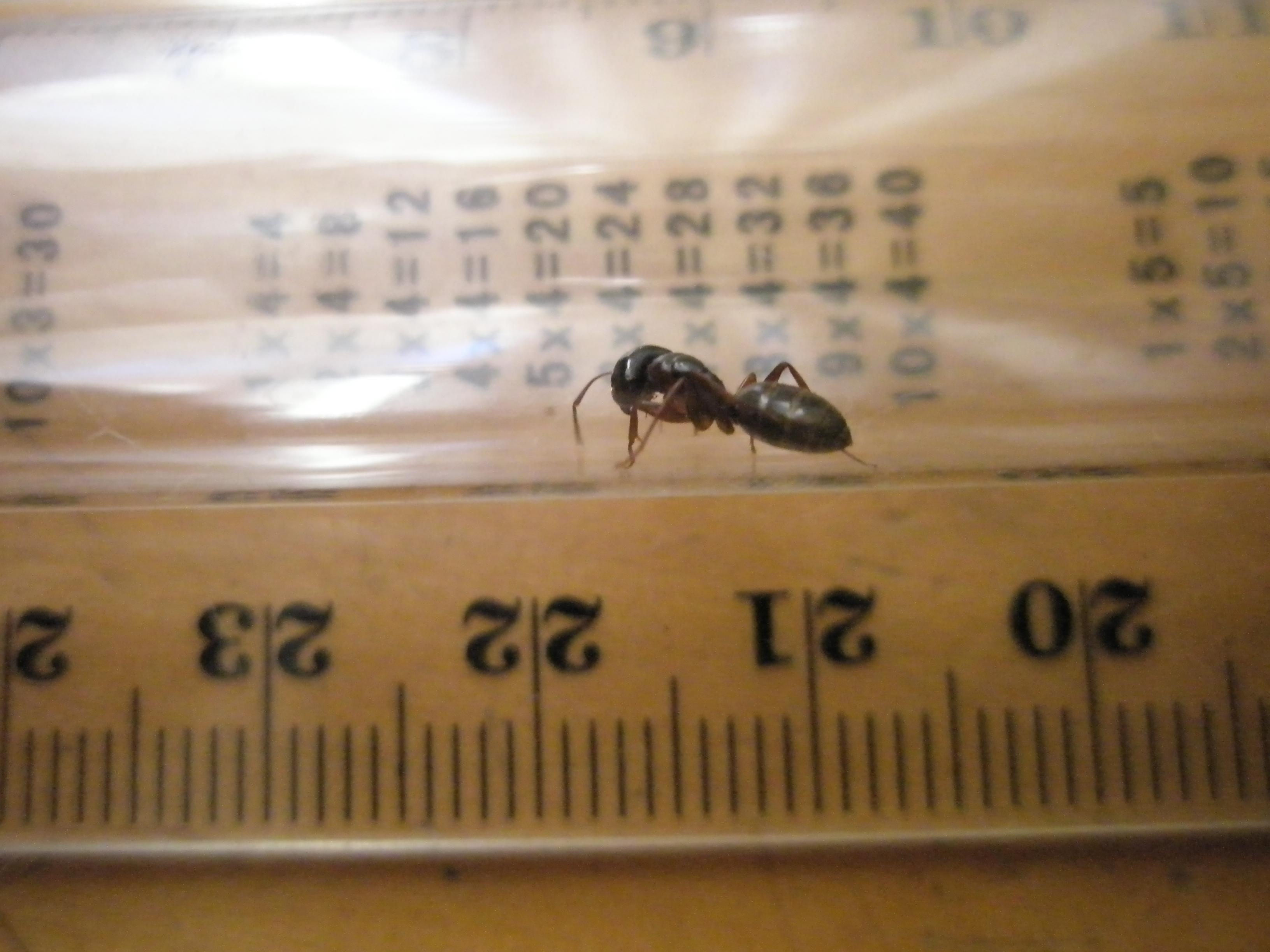 ich fand die Ameise auf den beiliegenden Fotos mitten in Berlins Innenstadt in einer reichlich grĂŒnen SeitenstraĂe auf einem schmalen, wenig begangenen Gehweg um etwa 15:15 Uhr, AuĂentemperatur 27°C. Also, Brillenetui hervorgeholt, Brille raus, Ameise rein, Brillenetui zu. In einem GeschĂ€ft habe ich Wasser aus meiner Flasche auf ein StĂŒck Taschentuch gegeben, das Etui vorsichtig geöffnet und das feuchte PapierklĂŒmpchen hinzugelegt. Ich bin mir nicht einmal sicher, ob es sich um eine