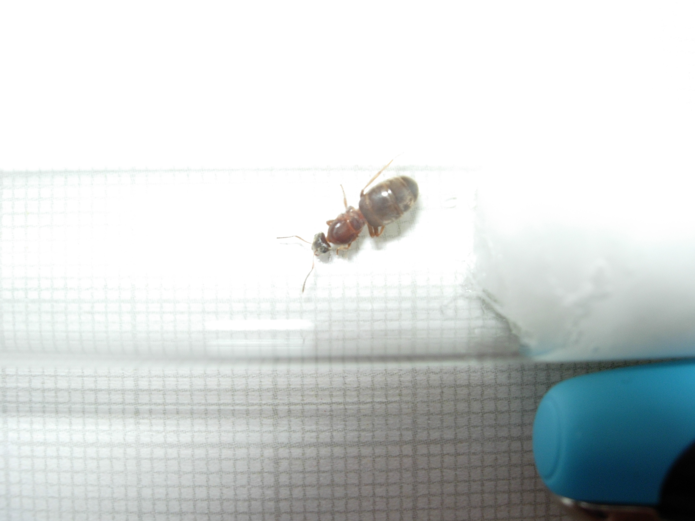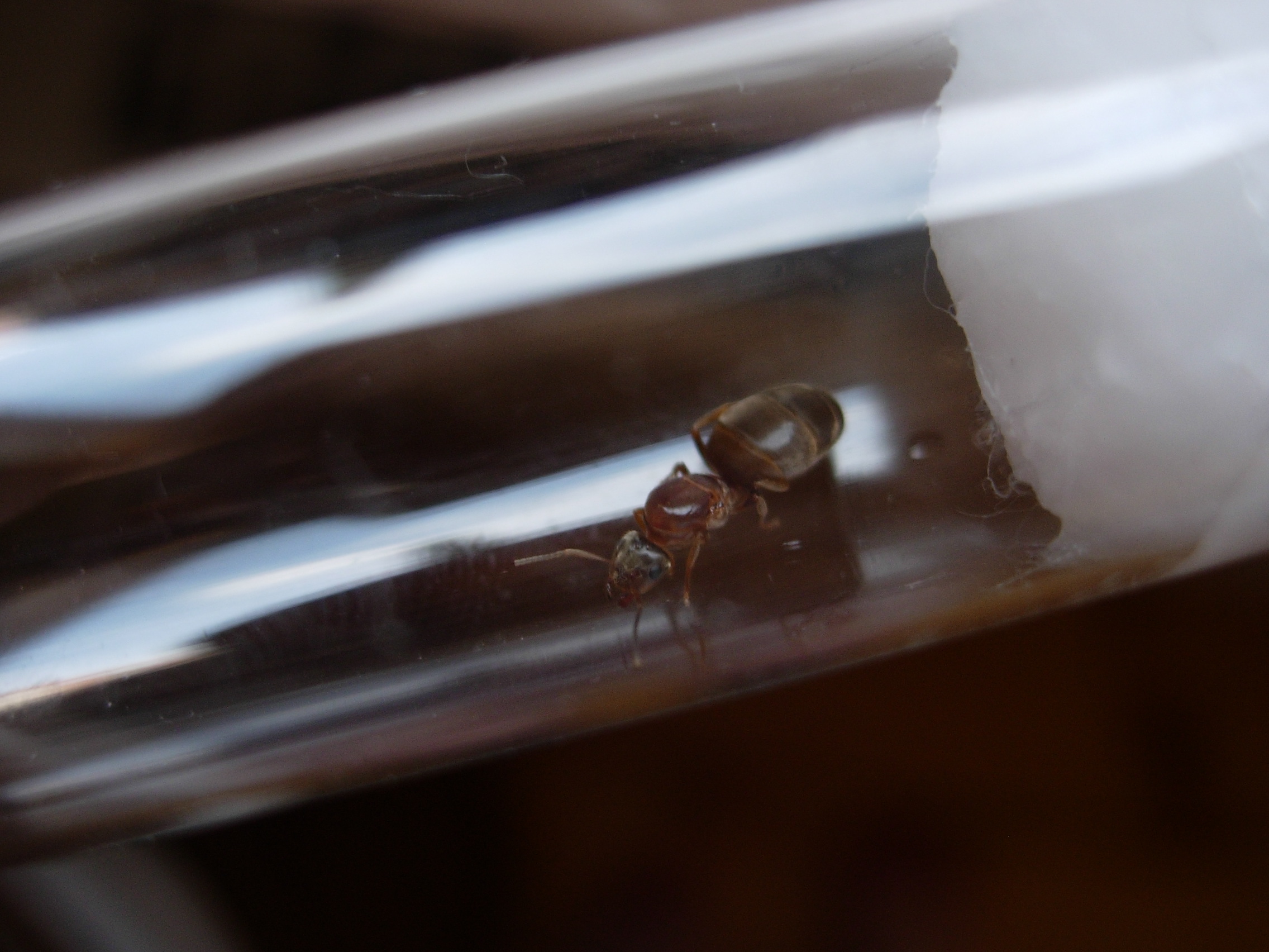 Die Ameise ist ohne Fühler und Hinterbeine genau 7,5 mm groß. Kopf und