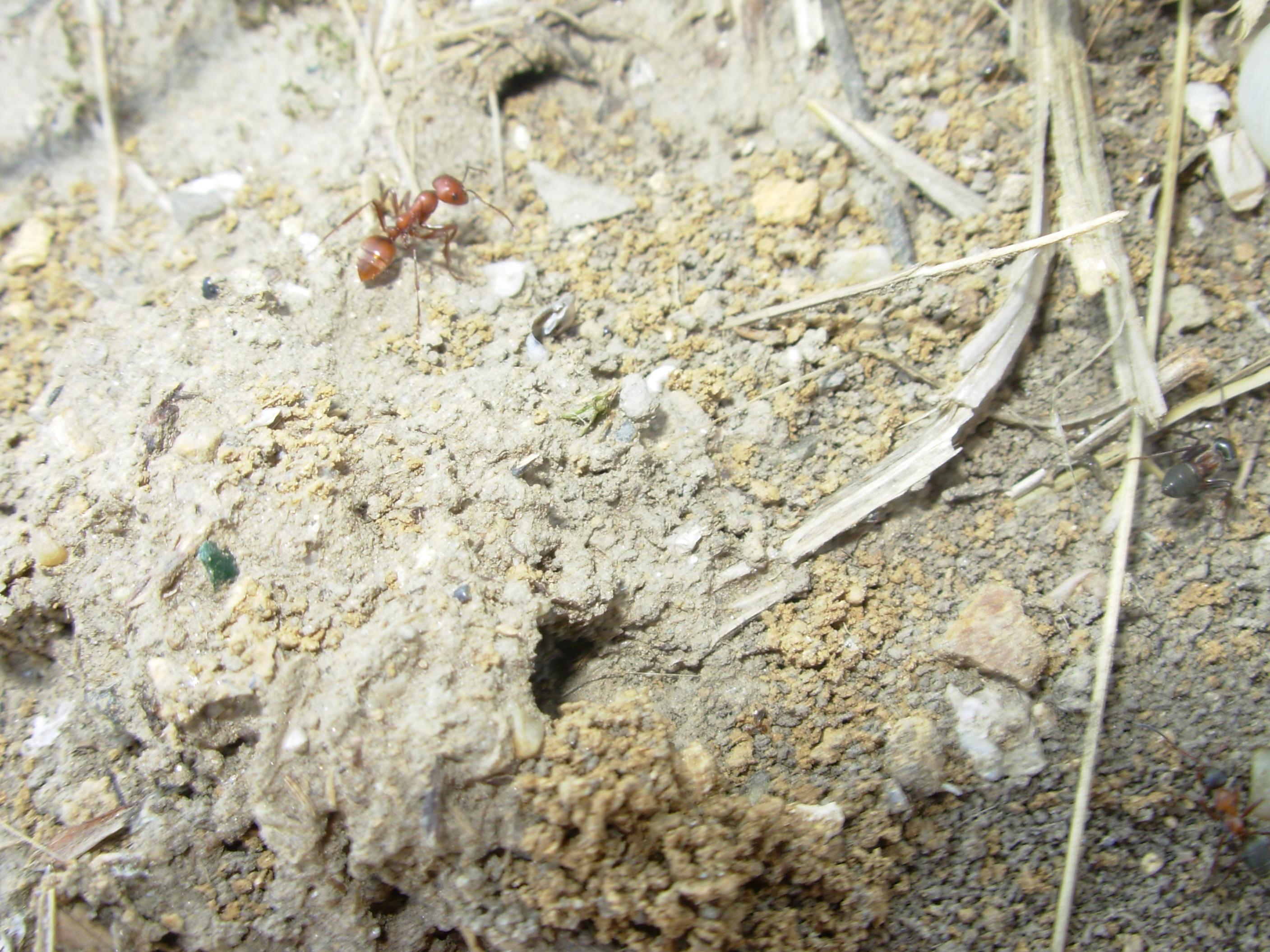 Um zu vermeiden das sie zertrampelt wird hab ich sie mir dann kurzerhand geschnappt und eine Böschung hinauf getragen. Diese Böschung hatte bis letzte Woche das Gras um einen Meter hoch also beschloss ich mich dort einmal ein bisschen umzusehen was Ameisen betrifft. Gefunden habe ich etliche sehr groĂe Kolonien von Formica