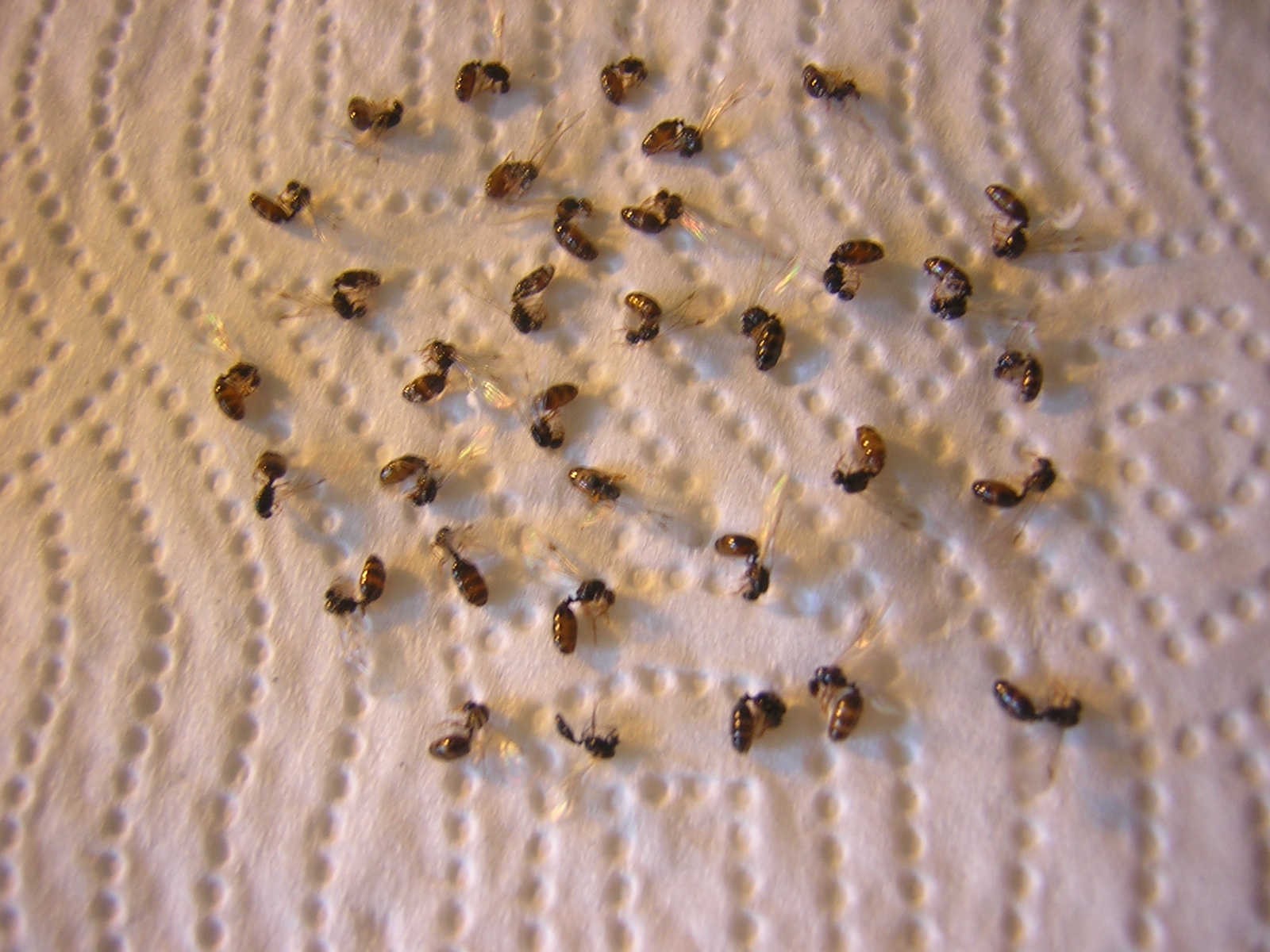 Da ich gestern einen Ytong auf meinem Gartentisch bearbeitet habe, sind einige Gynen, leider auf dem feinen Staub den ich dort zurück gelassen habe, verendet. Eine ungeflügelte Gyne konnte ich noch retten der Rest war leider schon im laufe des Vormittags gestorben.