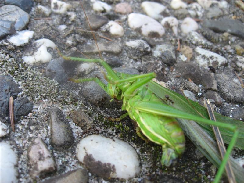 Hab einfach schnell die Digicam geholt. Der Grashoppler lebte zusammen mit seinen 100 Brüdern und Schwestern bei uns im Garten.