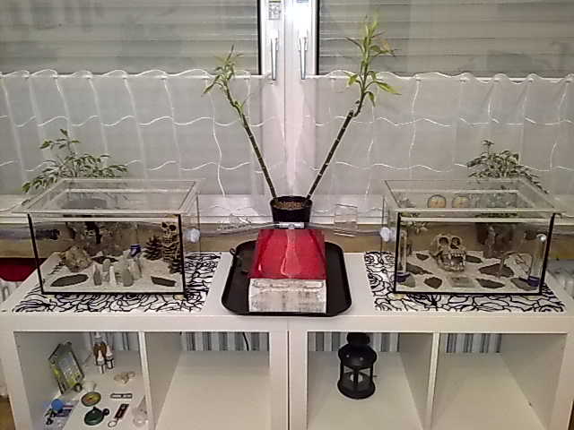 Das linke Becken wird von einer Heizmatte beheizt das rechte ohne. Das Nest wird zur hälfte von einer Heizmatte beheizt. Wie man sieht hab ich ein kleines Problem mit Kondenswasser was ich zur Zeit nicht in den Griff bekomme. Vielleicht hat eine/r ein Tipp für mich.