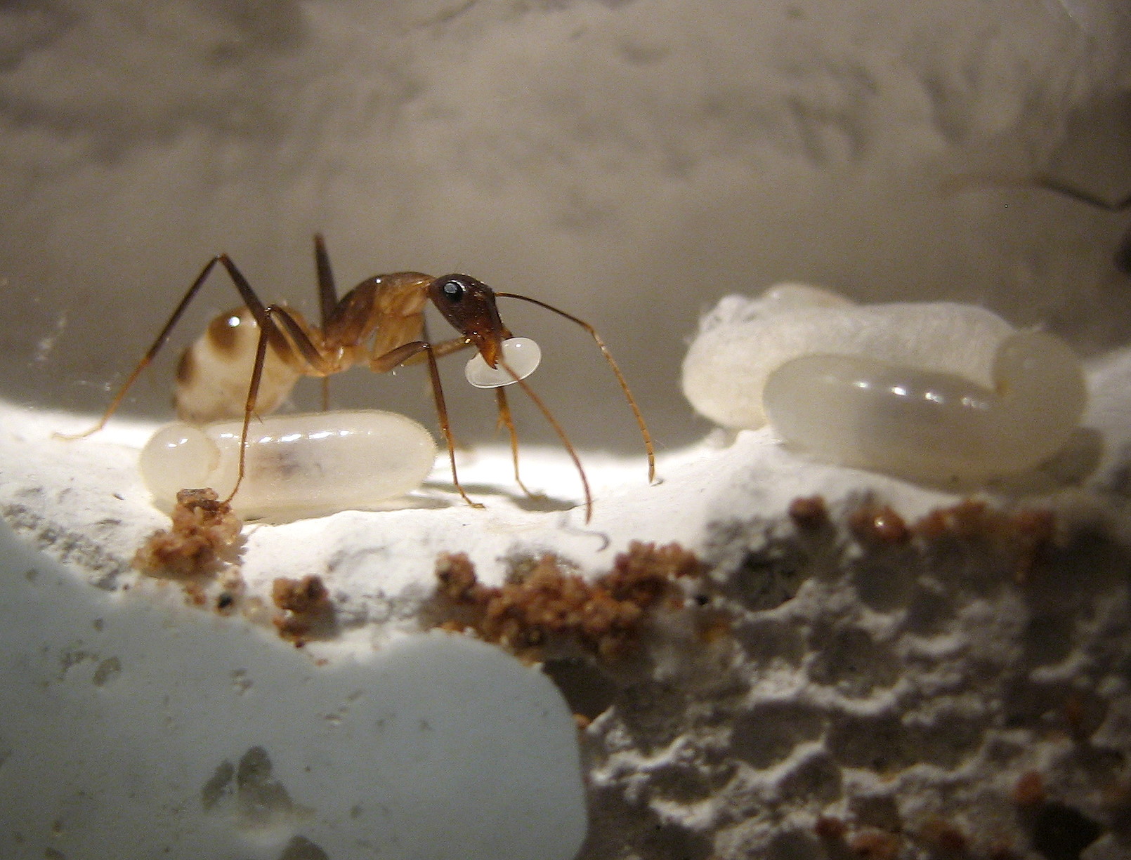 - Erfahrung: Des Weiteren habe ich den ersten Schlupf als Anlass genommen, die nachfolgenden vorherzusagen, was bisher auch immer gut geklappt hat. So ist diese Woche eine Arbeiterin nach genau 32 Tagen geschlüpft. Das erlaubt dem Halter zumindest ein wenig Überblick über die Entwicklung der Kolonie. Nichtsdestotrotz erstreckt sich die Entwicklungszeit der C. fellah von Ei bis Imago mittlerweile bis 90 Tage. Und das bei Minoren wohlgemerkt!