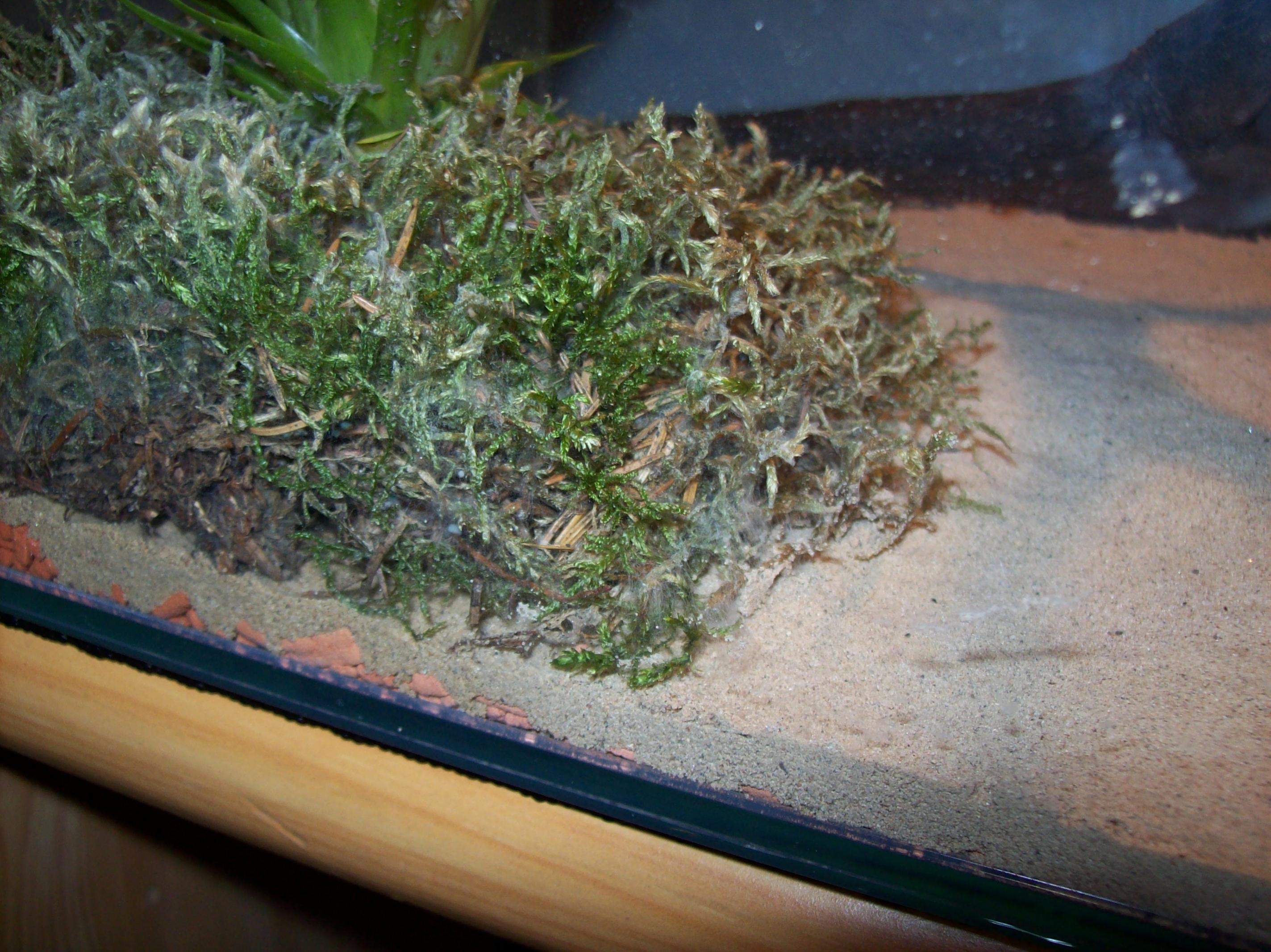 und zwar habe ich schonmal mein Formicarium fĂŒr meine Lasius niger die noch auf dem Balkon verweilen, eingerichtet...Ich habe eine Tillandsie mit Moos von Blumen Risse umwickelt und dies in der Ecke platziert...Nach dem ich das Moos und die Pflanze feucht halten muss, hat sich nach ein paar Tagen Schimmel gebildet...Ich hoffe man kann es auf dem Foto erkennen...Es sind kleine weisse FĂ€den...Nun meine Frage...Muss das ganze Moos raus ??? Was mach ich mit der Tillandsie ??? Kann ich das Moss noch retten ??? Und zuletzt was ich mir schon denken kann...