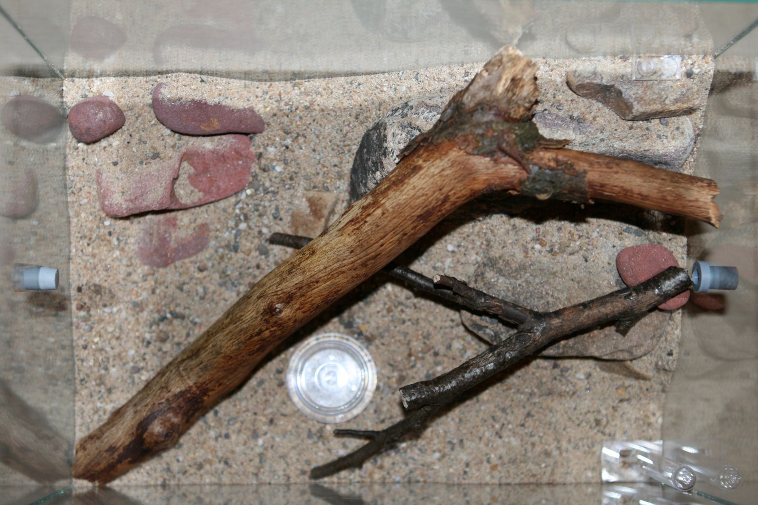 - die Frage die ich habe ist, ob die Ameisen es schaffen sich hinter dem Stein (hinten rechts) einzunisten bzw. ob sie trotz des groben Sandes GÀnge darin bauen können?