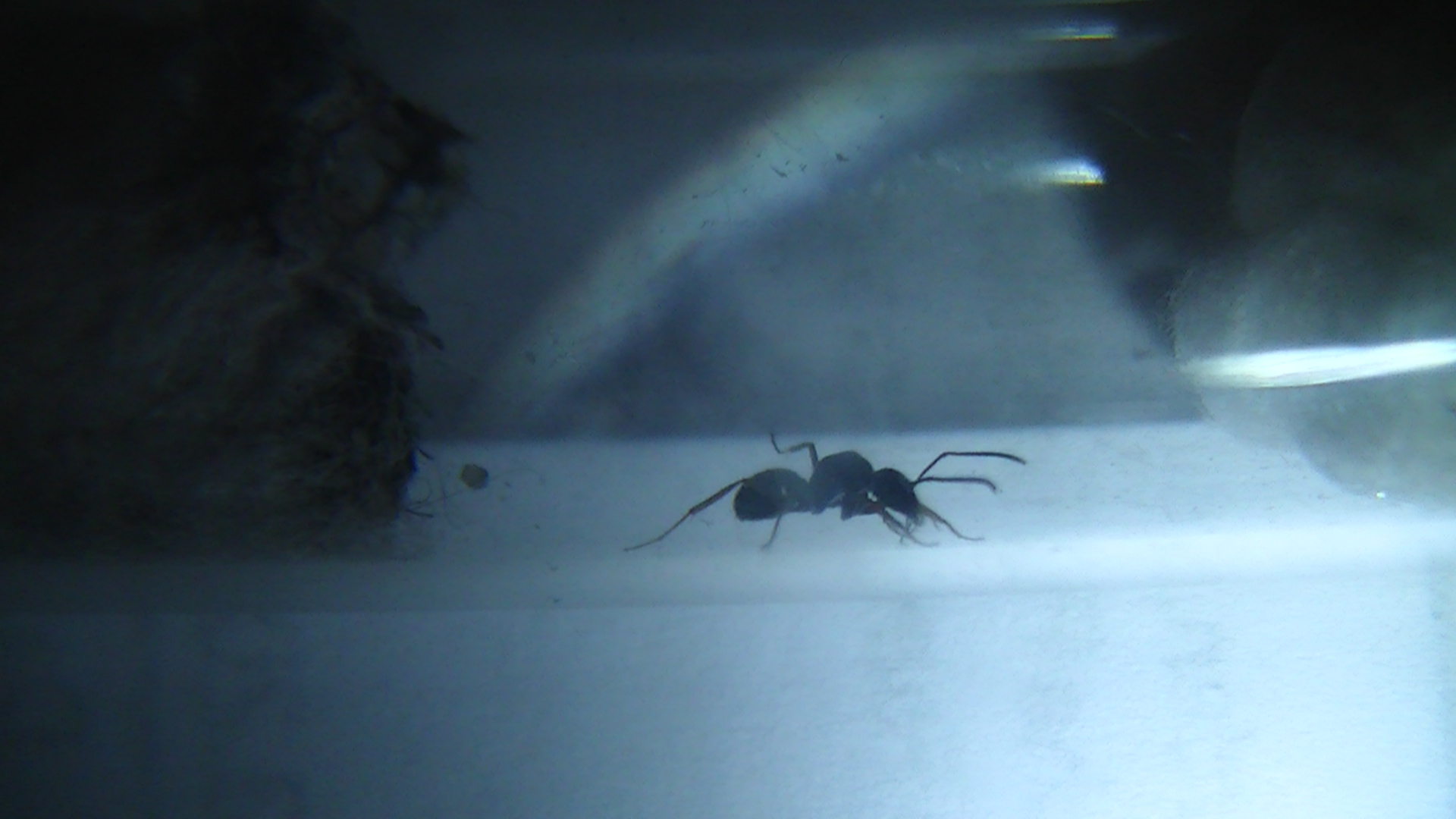 Die Ameise, die ich gestern entdeckt habe (die mit dem großen Mesosoma), scheint wohl fĂŒr den Aussendienst zustĂ€ndig zu sein^^, sie ist stĂ€ndig im ganzen Becken unterwegs wĂ€hrend die anderen kaum ĂŒber den Rand des Y-tongs schauen . Die Ameisen umgehen inzwischen die Honigzuckerlösung. Ich hoffe das heisst, dass sie satt sind......