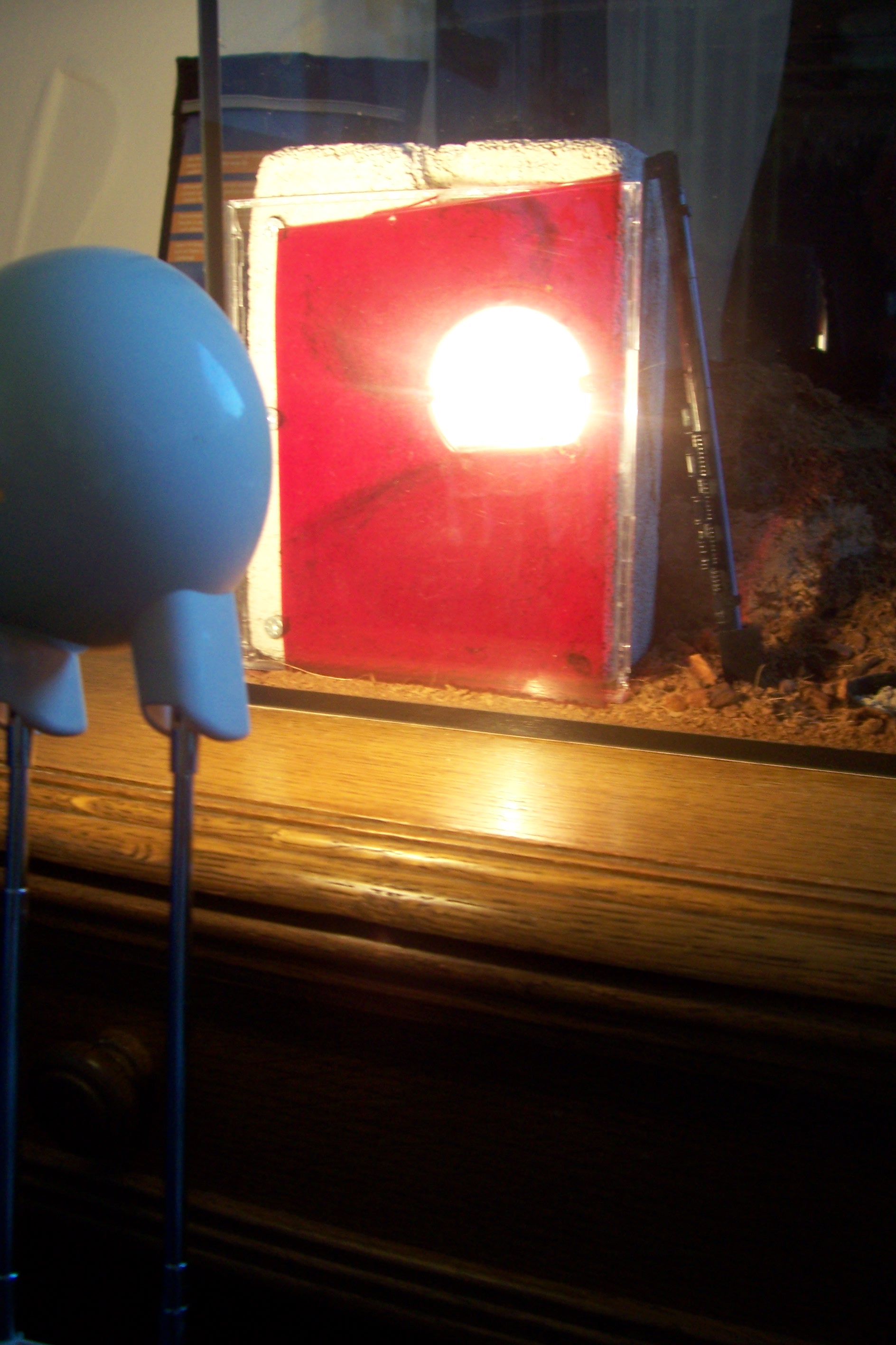 Durch die Lampe hält sich die Temperatur auf etwa 22°C außerhalb des YTongs; innerhalb werden es wahrscheinlich gute 25°C sein.