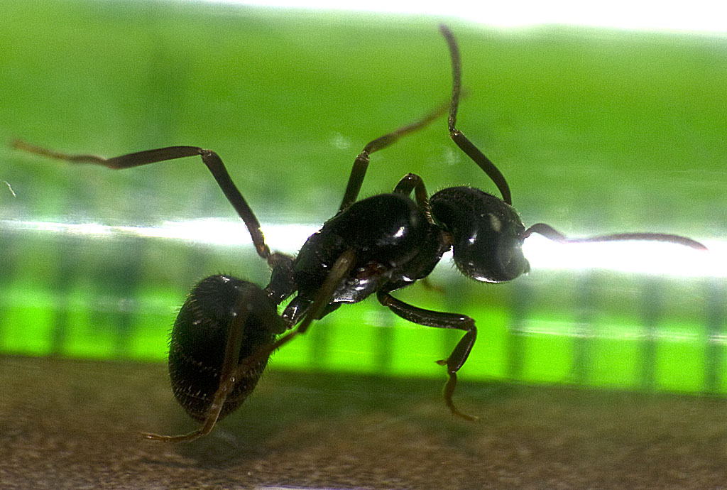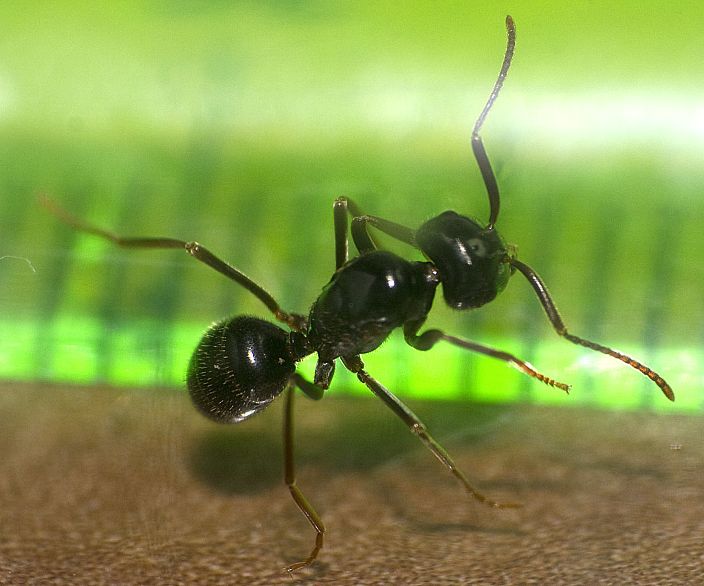 als ich gerade als ich, vor dem Regen flĂŒchtend, nach Hause kam, direkt vor unserer TĂŒr eine Gyne gefunden. Beim betrachten mit dem bloßen Auge, dachte ich schon, dass die Tetramorium sp. hinterm Haus geschwĂ€rmt sind, aber wenn ich mir nun die Makroaufnehmen ansehe, kommt mir doch eher L. fuliginosus in den Sinn.
