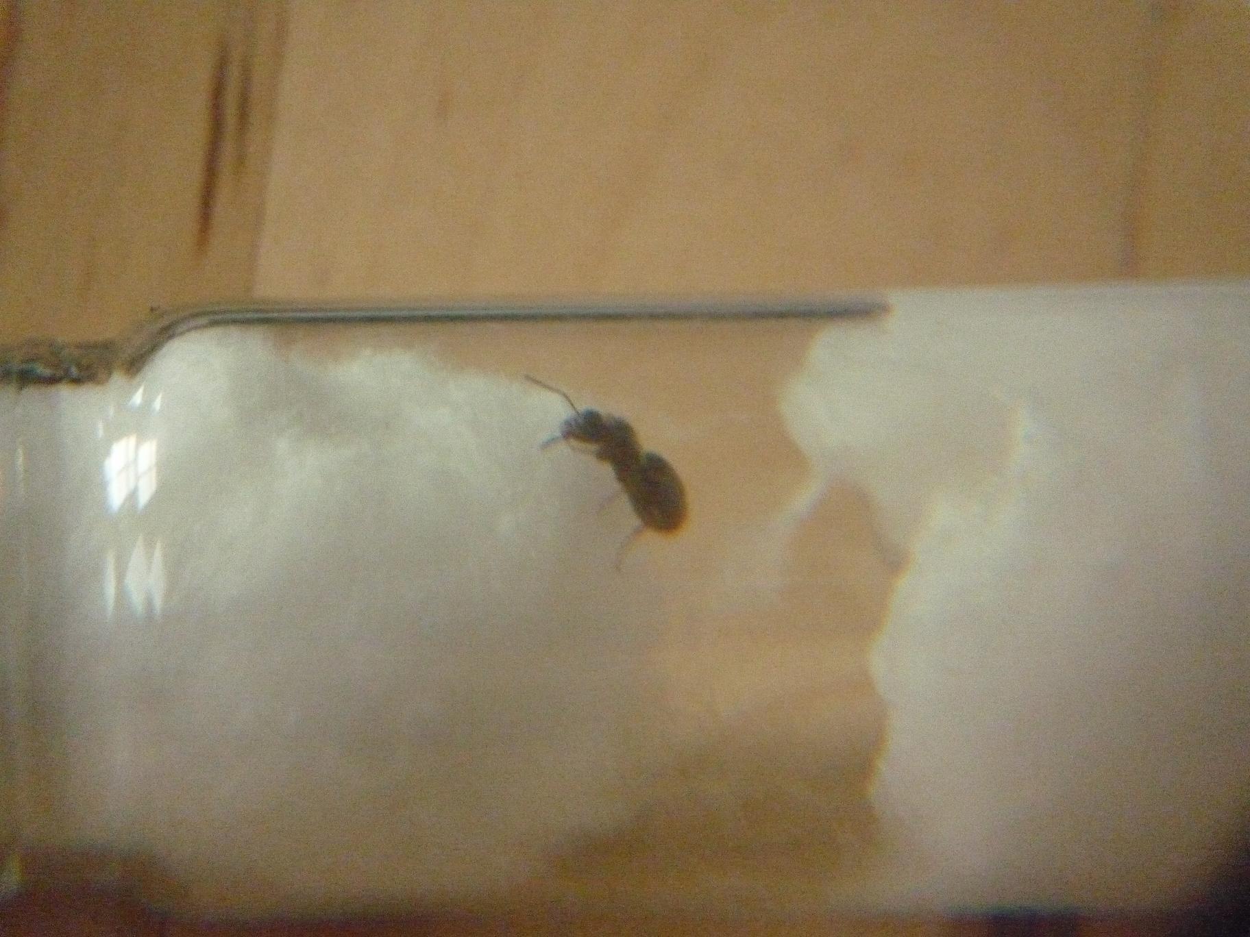 Sie ist nun den 3. Tag in ihrem Reagenzglas unter den gleichen Bedingungen wie die andern beiden, scheint sich aber nicht wohl zu fühlen. Von Eiablage keine Spur, mir scheint es eher so als wollte sie flüchten.
