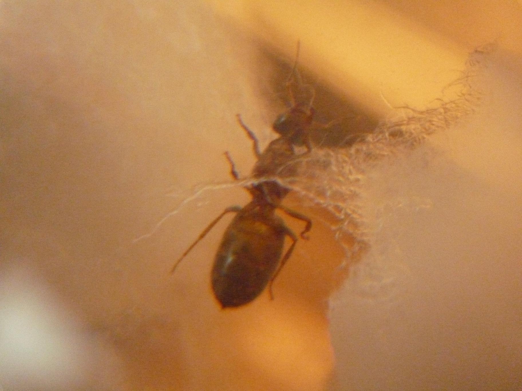 Biete der Gyne ein viel kleineres Reagenzglas an. Meiner Meinung nach fühlt sich die Gyne unwohl. Der viel zu dicke Watteknäuel vom Eingang, drängt die Gyne in die viel zu feuchte Watte vom Wassertank.