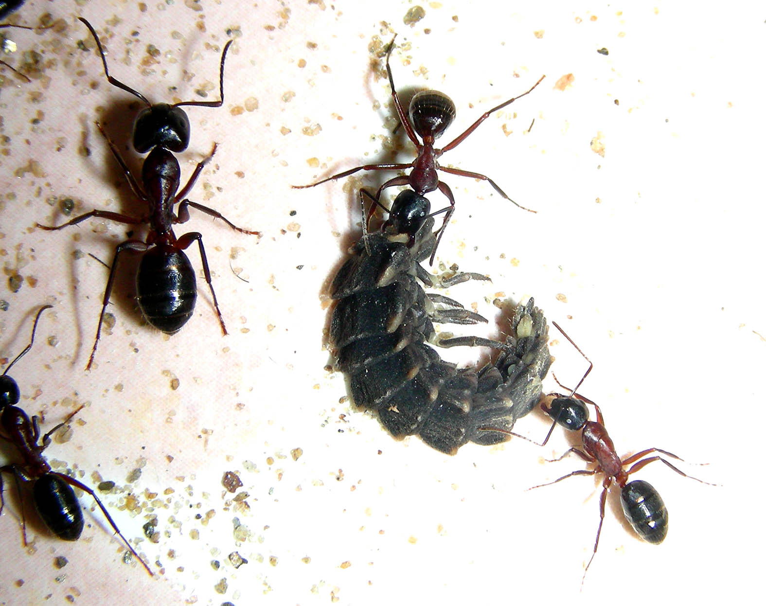 18.03.2011 Gab ihnen in den letzten Tagen immer wieder Insekten hinein die sie alle komplett verwendeten. Heute waren es kleinere Insekten und zwar 90 Essigfliegen - mit denen sie aber bis zum Abend (bis auf ein paar wenige) nichts anfangen konnten - deshalb wieder entfernt. Hoffe ich merke mir das die Camponotus nichts mit den Essigfliegen anfangen können.