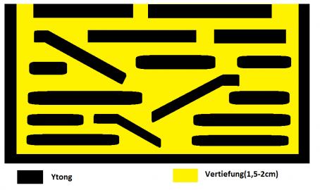 Es besteht darinn, dass man einen Ytong vertieft, wie z.B. in meiner Zeichnung und man solche Stützen macht. Das ganze wird dann mit Wüstensand oder noch besser mit Flusssand(da die Kristalle eckiger sind und besser zusammenhalten) verschüttet.
