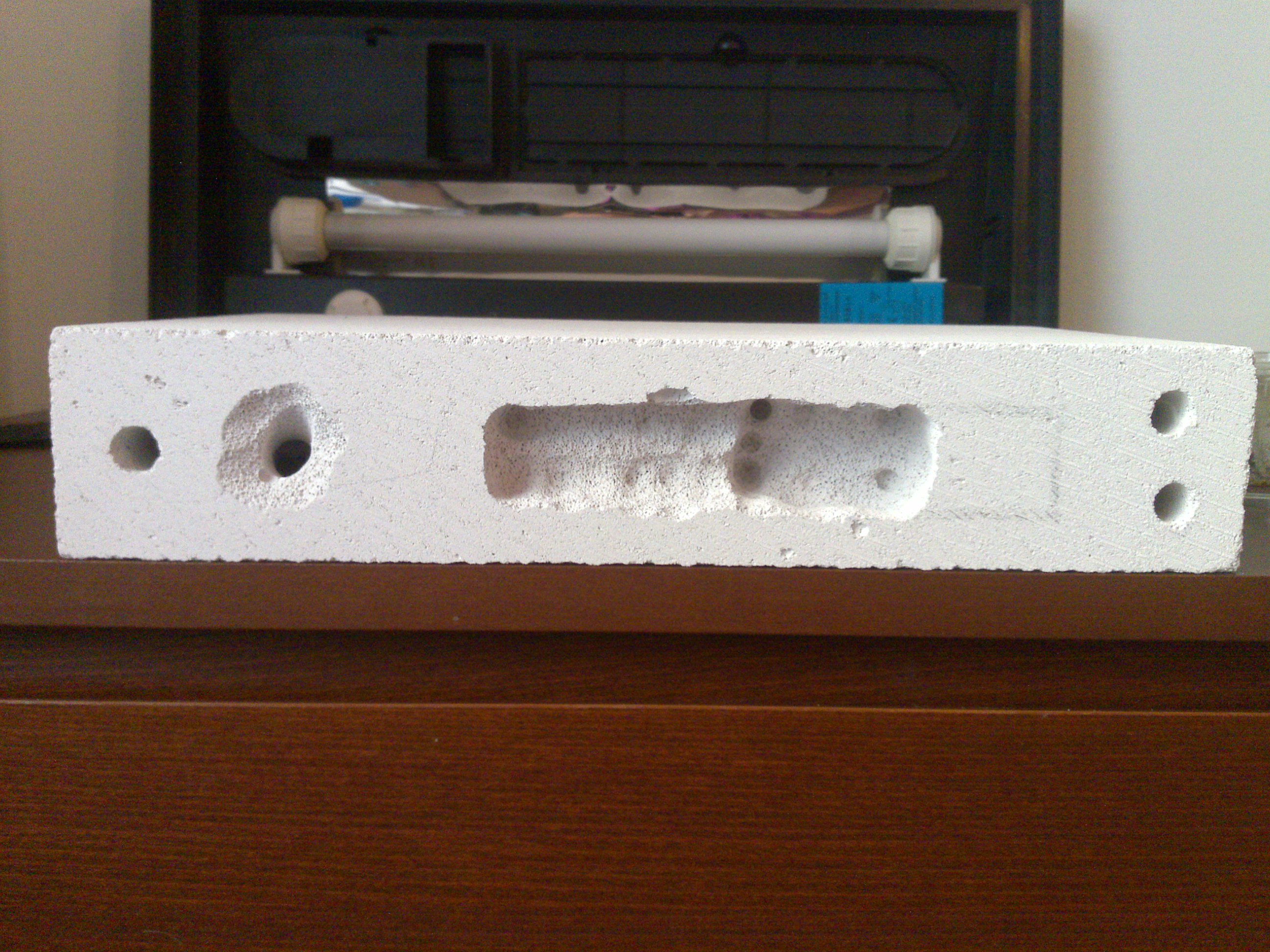 Der Ytongstein ist etwa 39cm lang, 25cm hoch und 7,5cm tief.