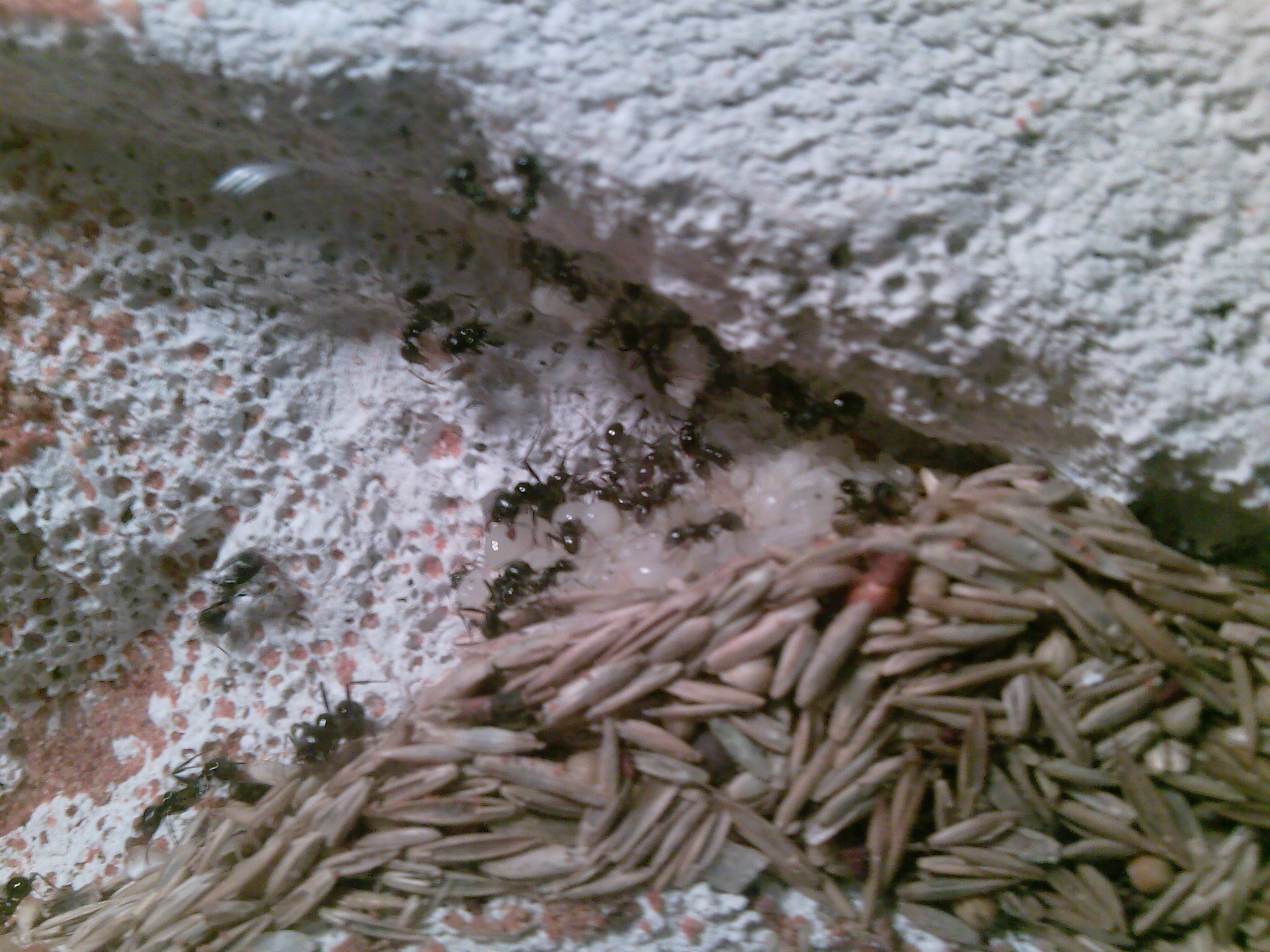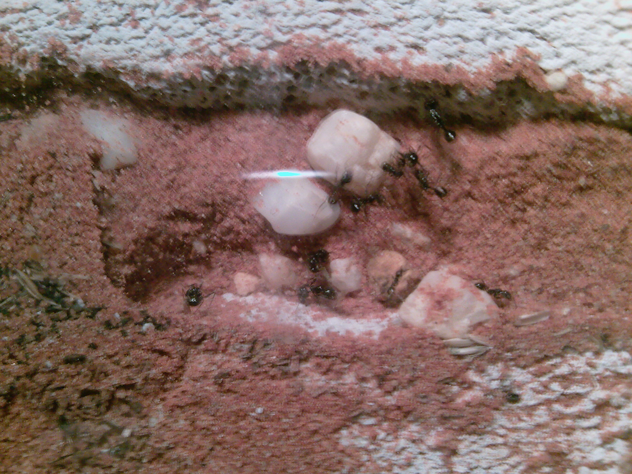 Ja und noch etwas merkwürdiges konnte ich beobachten, meine Messor barbarus schleppen nun alle Samen in den unbewohnten Ytong. Ich habe auch ein paar Bilder wie das aussieht. Wenn jemand eine Ahnung hat was die da machen bitte auch wieder in den