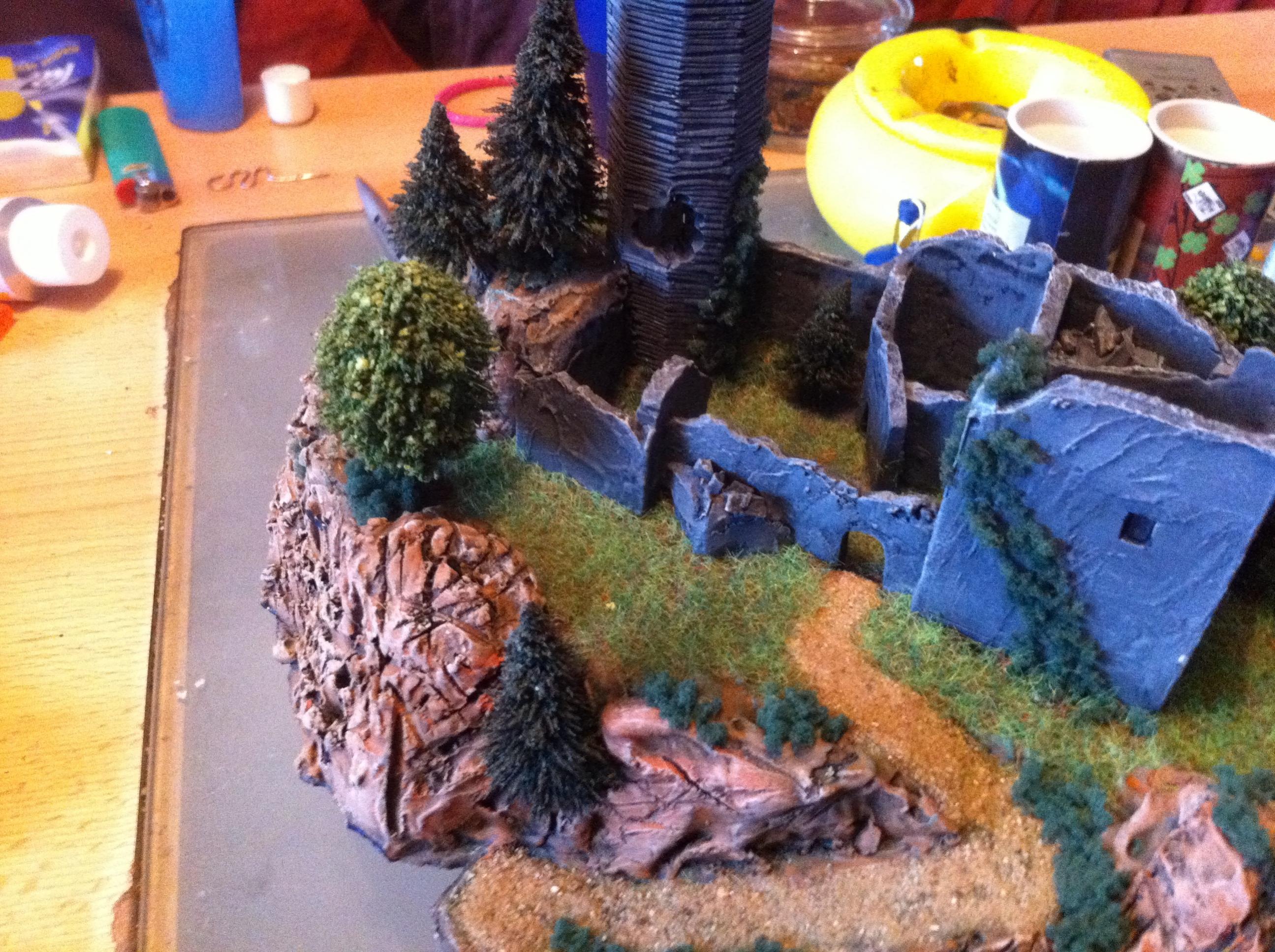 Nachdem der Rohbau der Ruine stand, habe ich den Sockel mit Styropor erhöht und mit Gips verspachtelt.