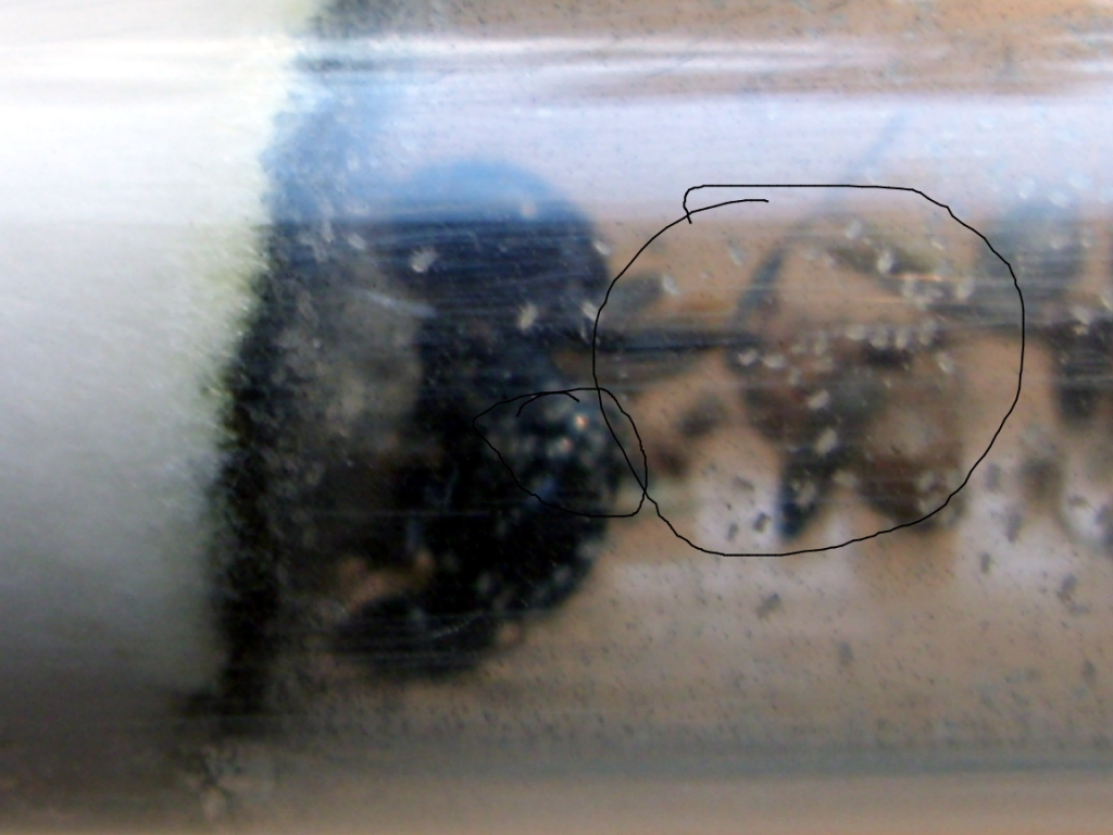 Fragt sich dann nur noch, wann, wie und wo Milbeneier oder -larven in das RG gelangt sind. - Auch wenn das Bild nicht toll ist: Milben sind es auf jeden Fall.