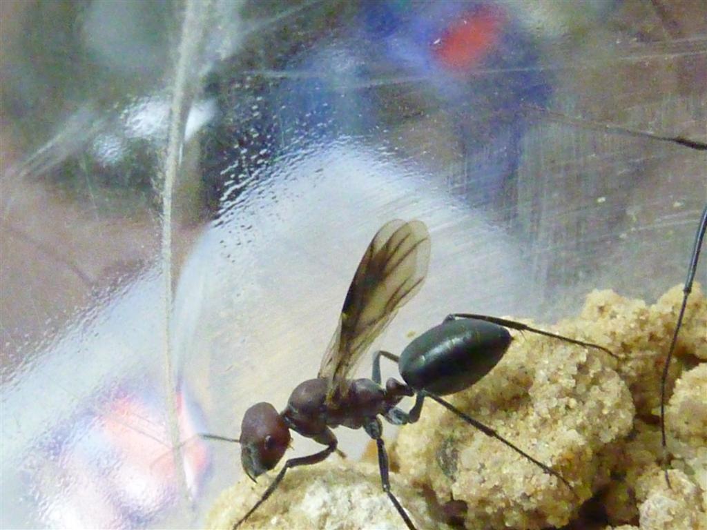 Mal noch was anderes: Hast Du die Fotos gleich nach dem Fang gemacht oder erst ein paar Tage später? Ich ziele mit der Frage nämlich auf das (noch) Vorhandensein der Flügel ab. Wenn Du sie sofort beim Herauskrabbeln aus ihren Löchern gefangen hast, stehen die Chancen ausgesprochen schlecht, dass sie eine Kolonie gründen wird. Im Normalfall heben die Damen nämlich erst mal zum Hochzeitsflug ab und werden dabei oder danach begattet. Im Anschluss brechen sie sich die Flügel ab, die sie ja nun nicht mehr brauchen, und suchen sich eine geeignete Nistmöglichkeit.