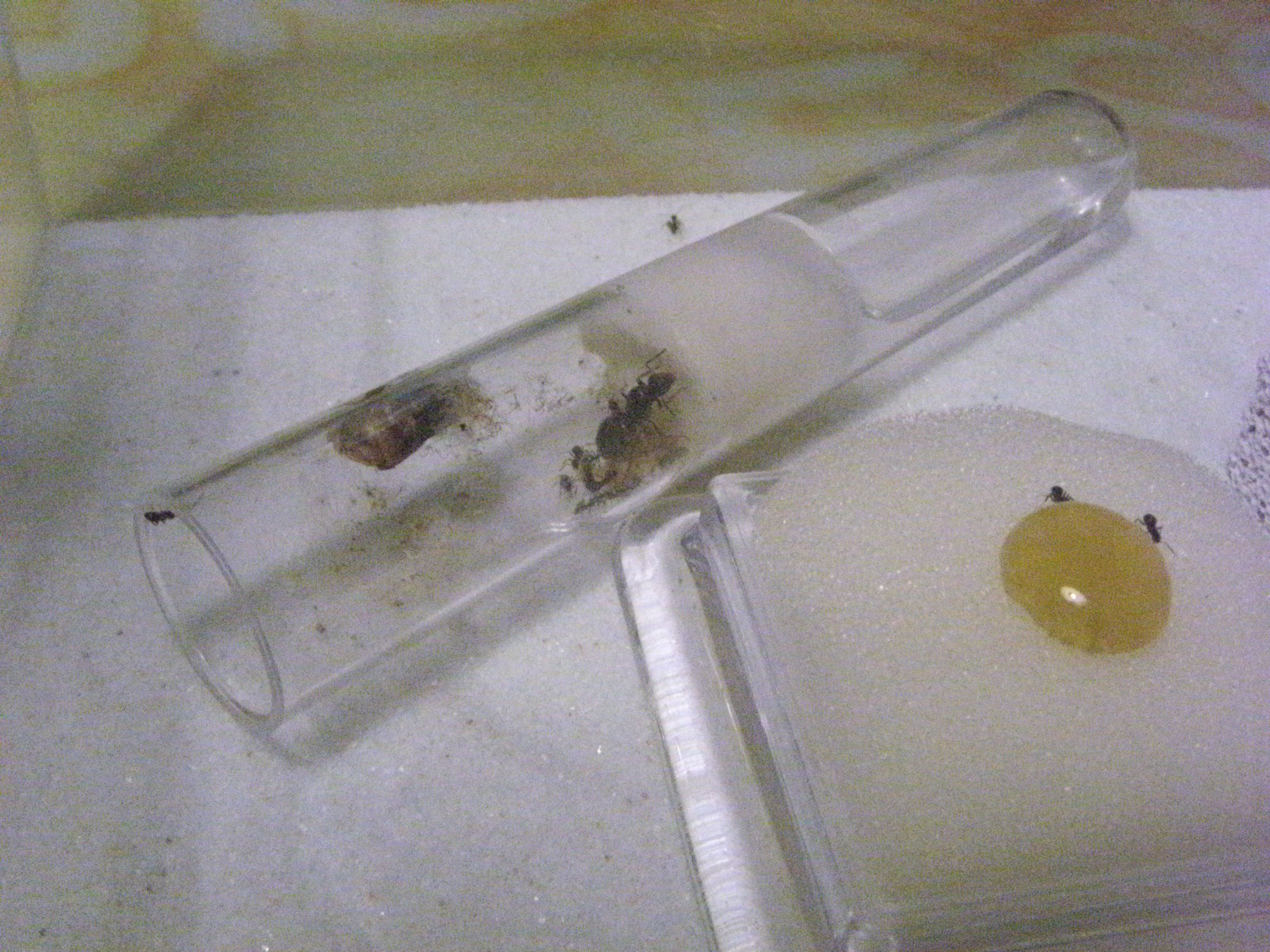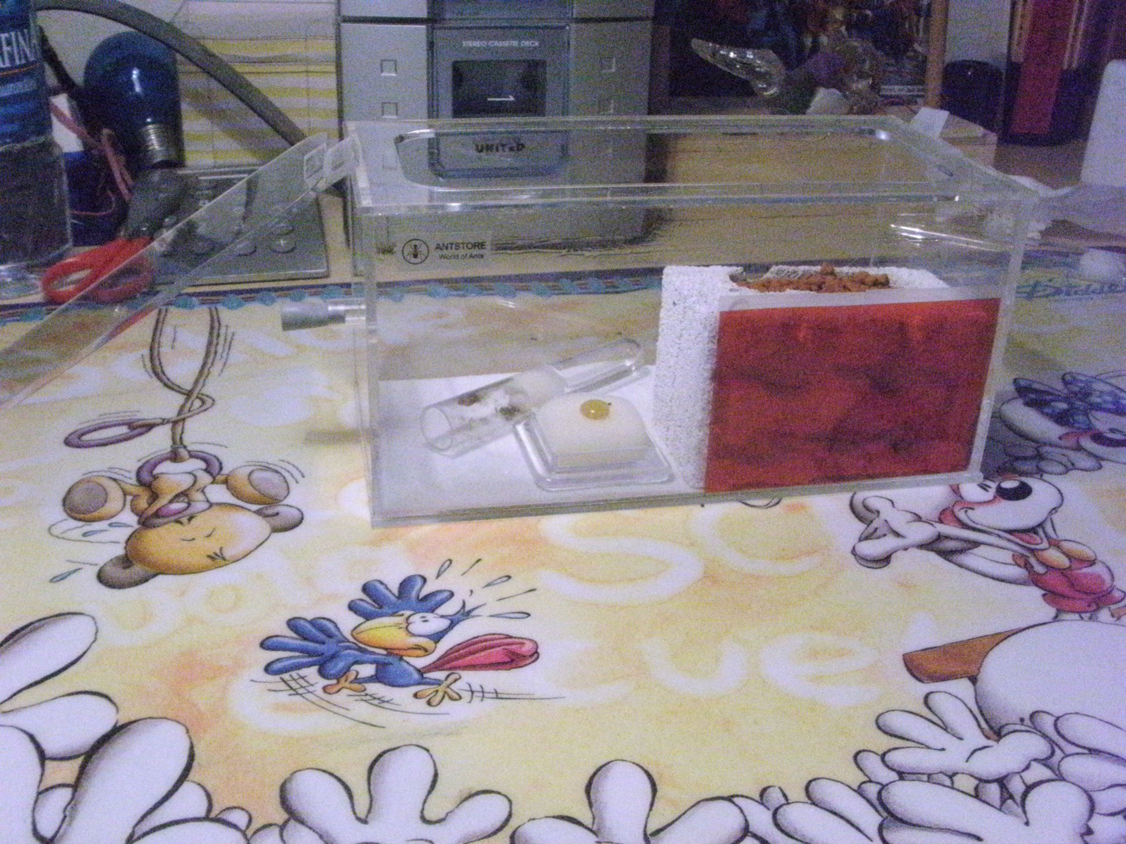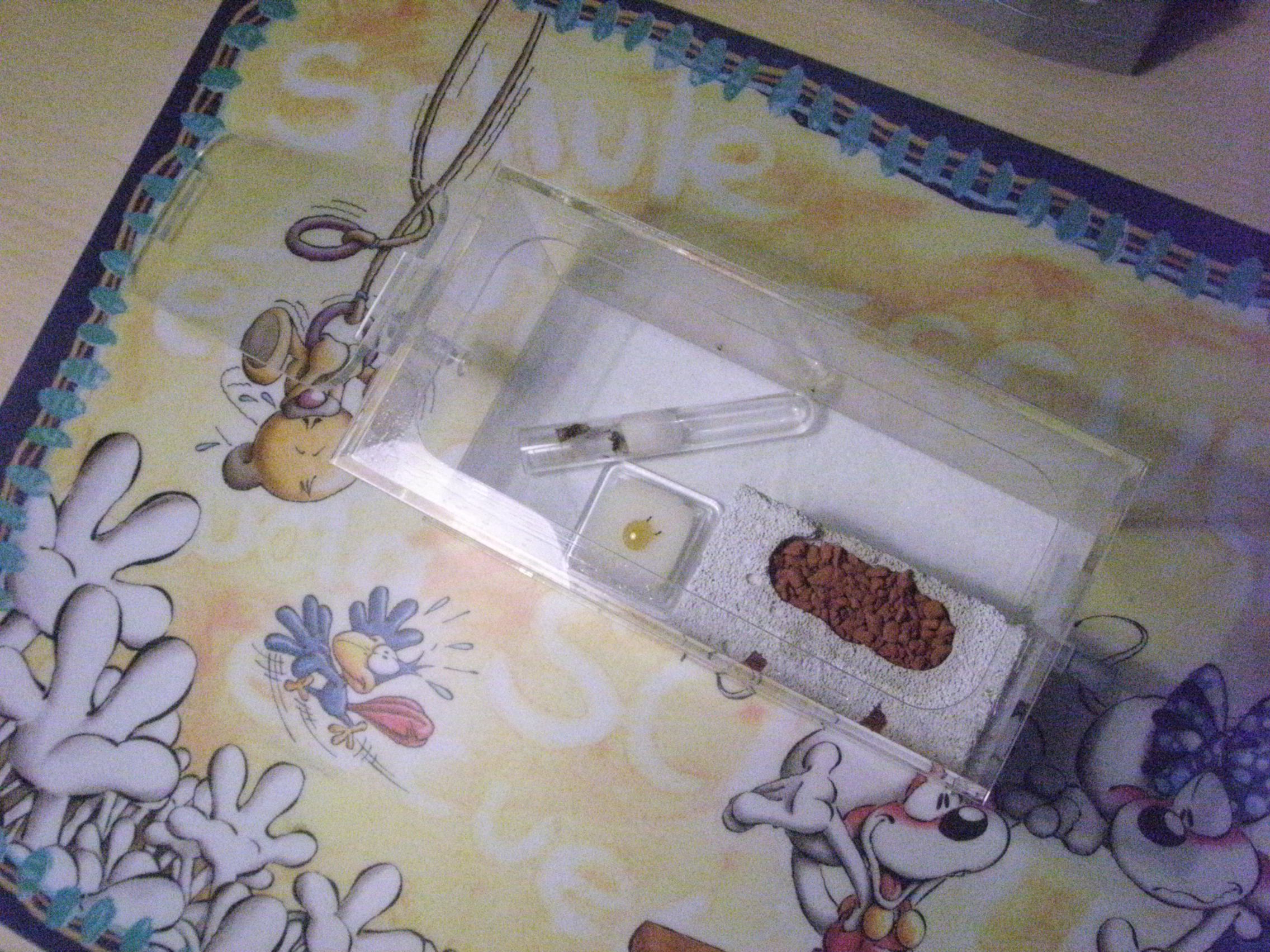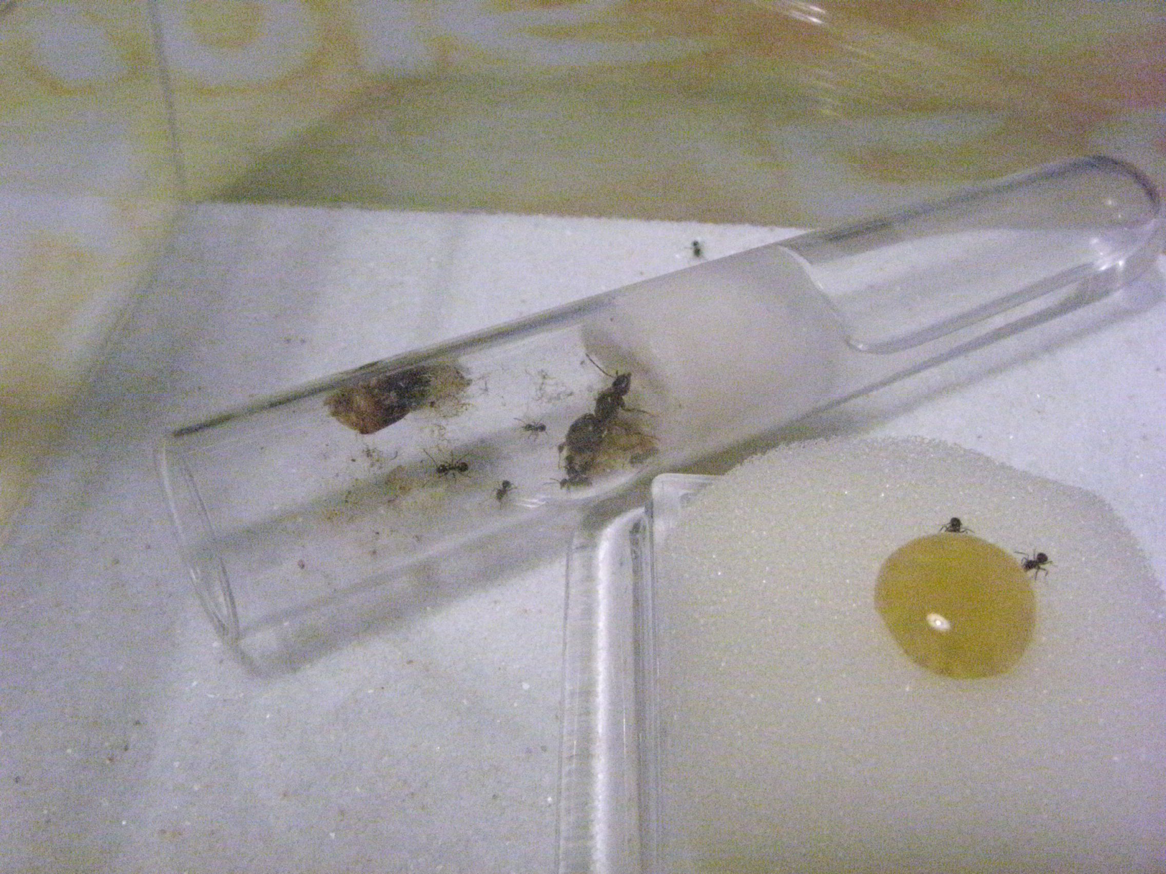 Ich sende nachher noch ein paar Fotos und Videos vom Anfang, also da, als ich sie erst gerade ins Formicarium reingetan habe, von den Zophobas und von heute.